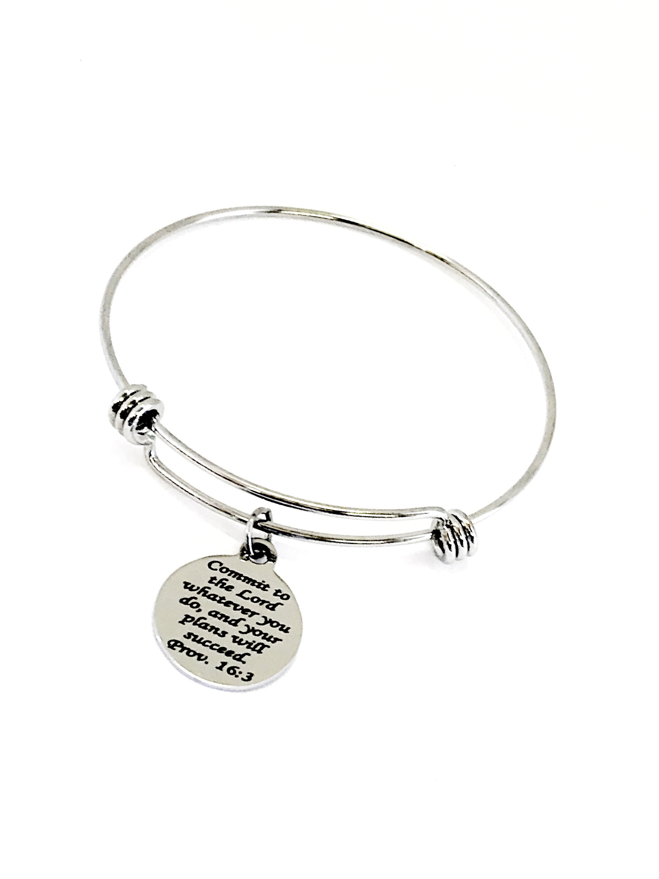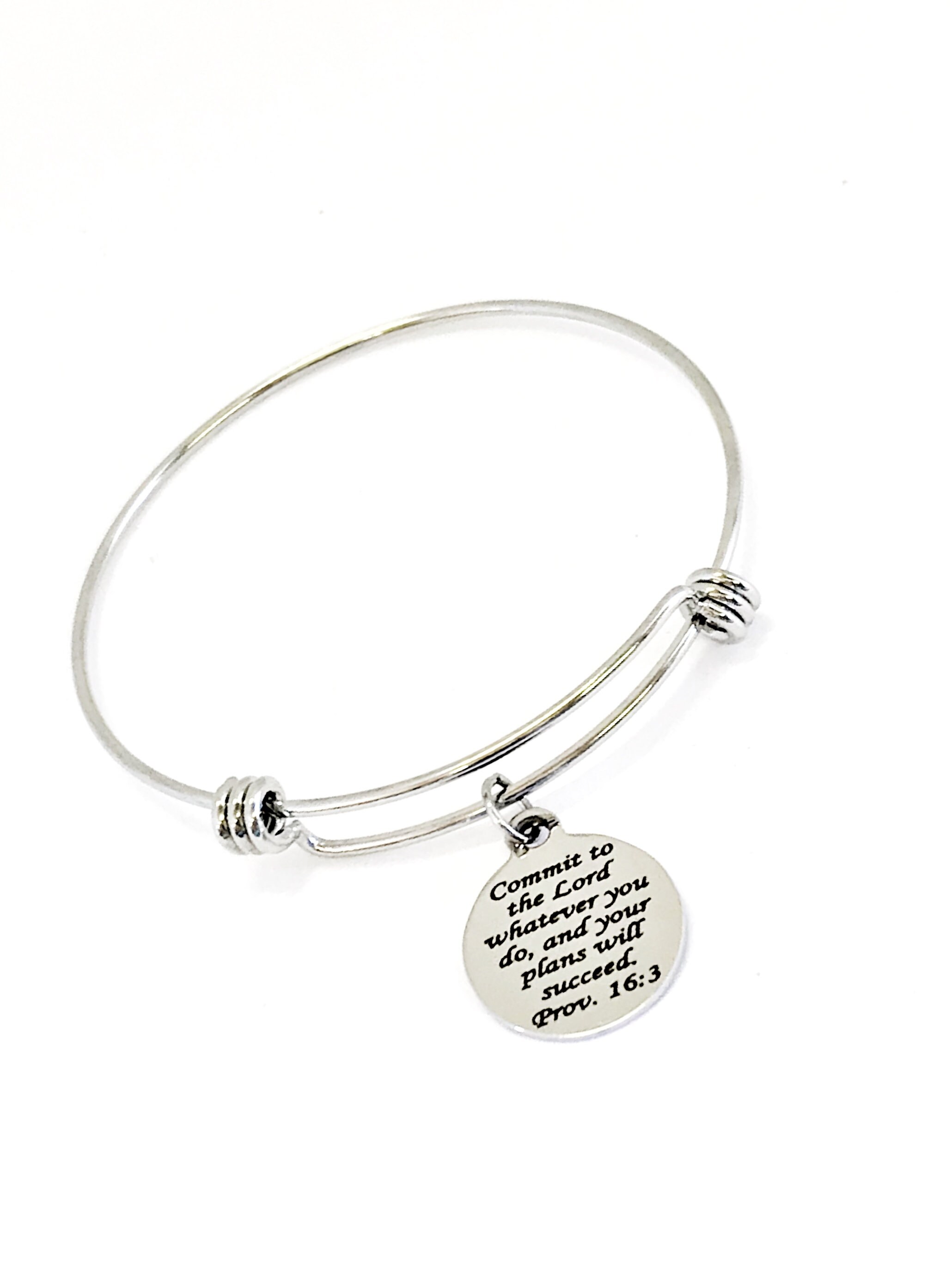 This simple Christian jewelry bracelet would be a great gift of encouragement. It has a stainless steel laser engraved charm that says “Commit to the Lord whatever you do and your plans will succeed” from Proverbs 16:3 on it.