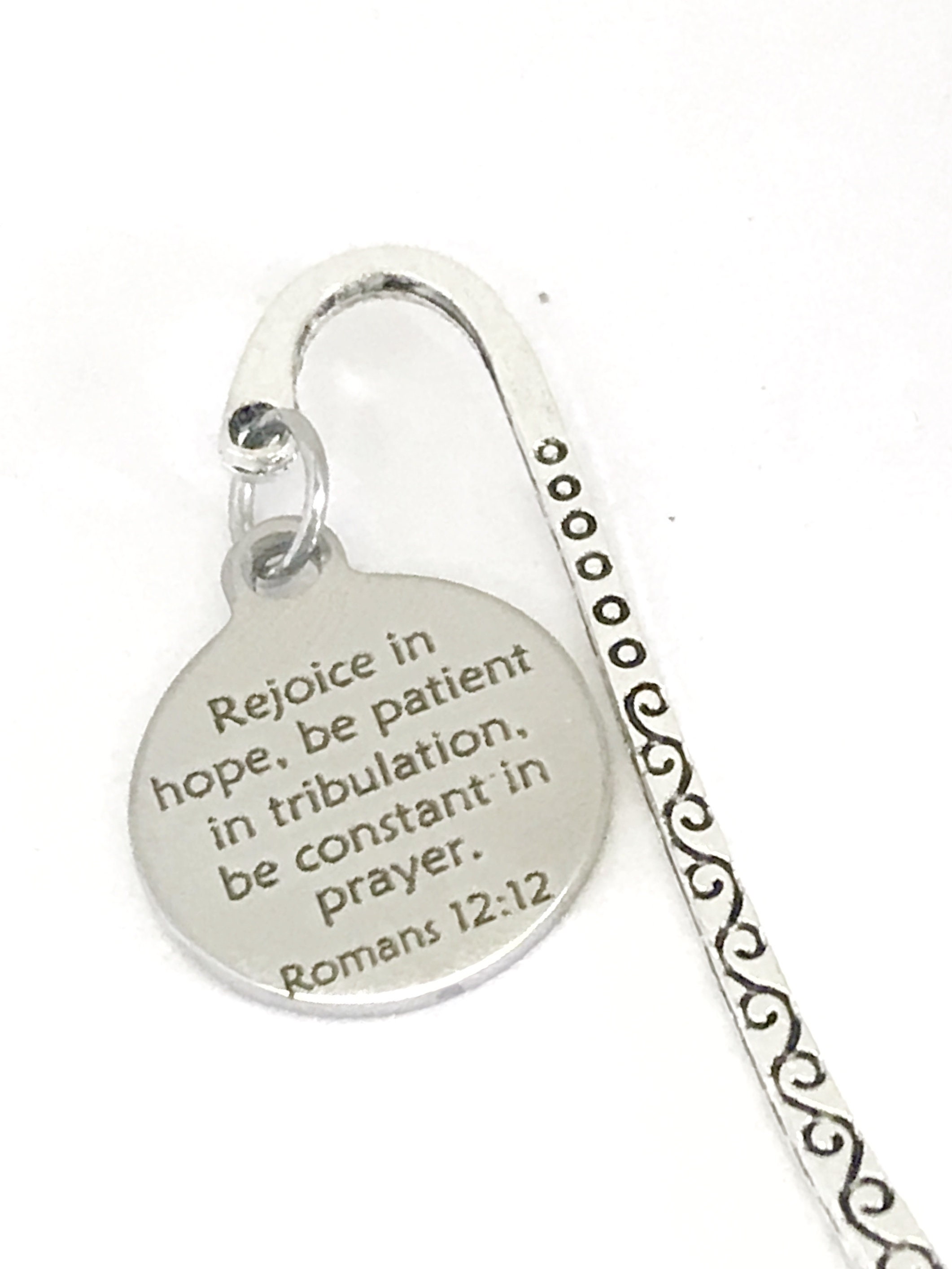 This is a great Bible Verse bookmark gift. It is a bookmark with a stainless steel laser engraved charm with the following verse on it: