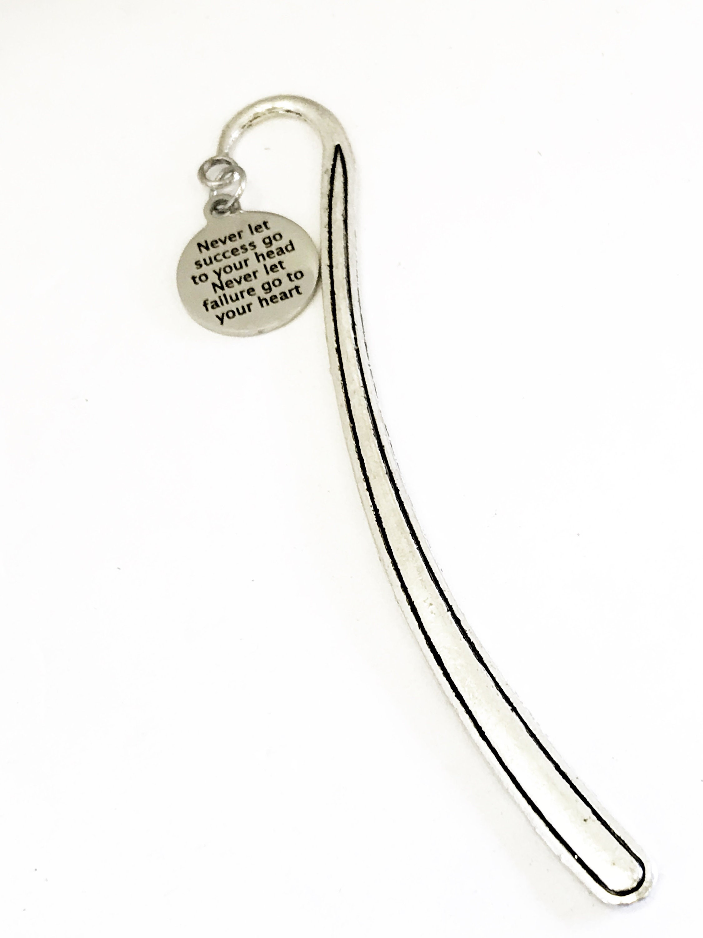 This bookmark would be a great planner charm or reader gift, Bible bookmark or planner bookmark. It has a stainless steel laser engraved charm with “Never let success go to your head Never let failure go to your heart” on it.