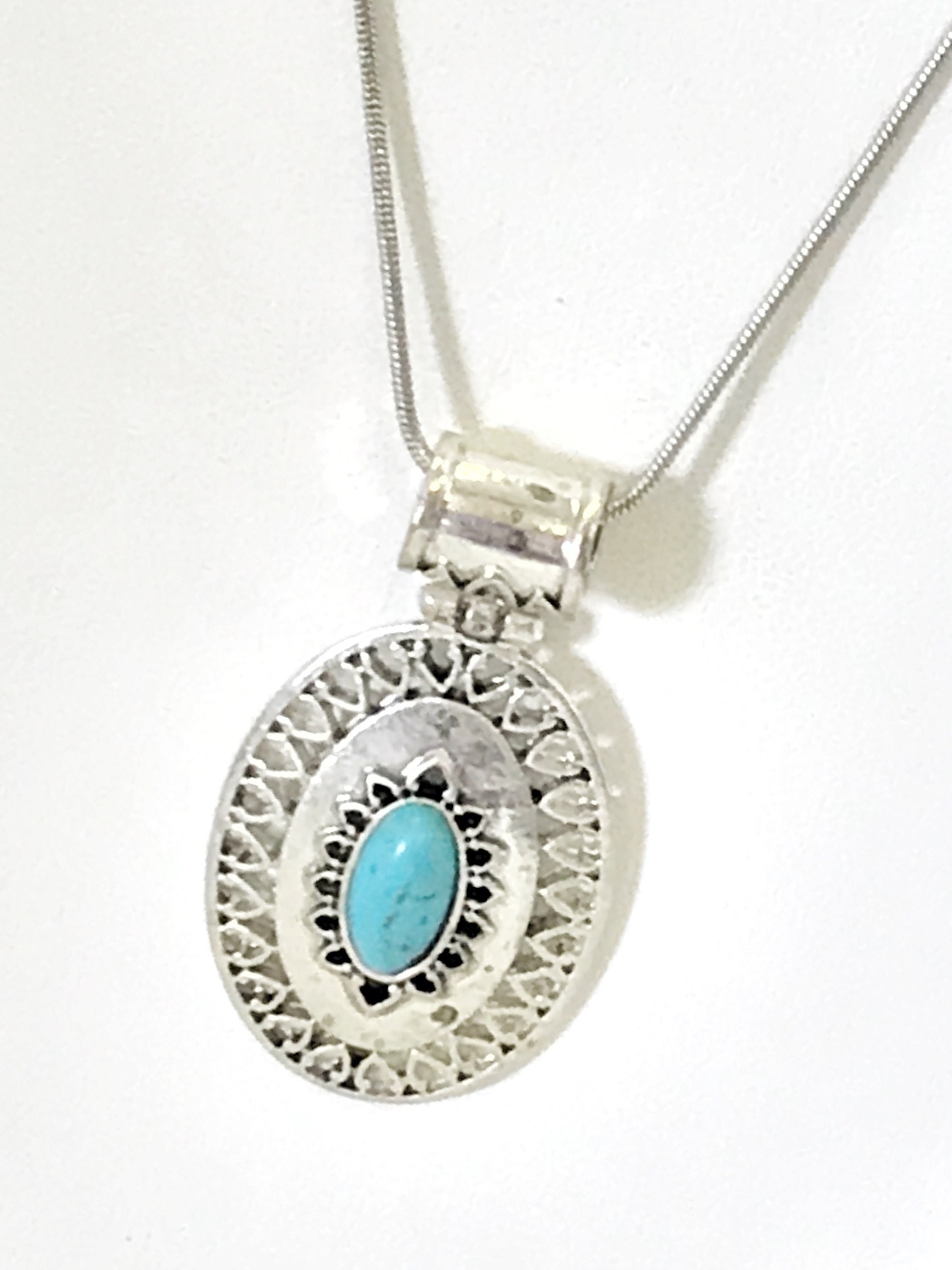 This is a beautiful ornate silver-tone blue howlite pendant necklace jewelry gift.