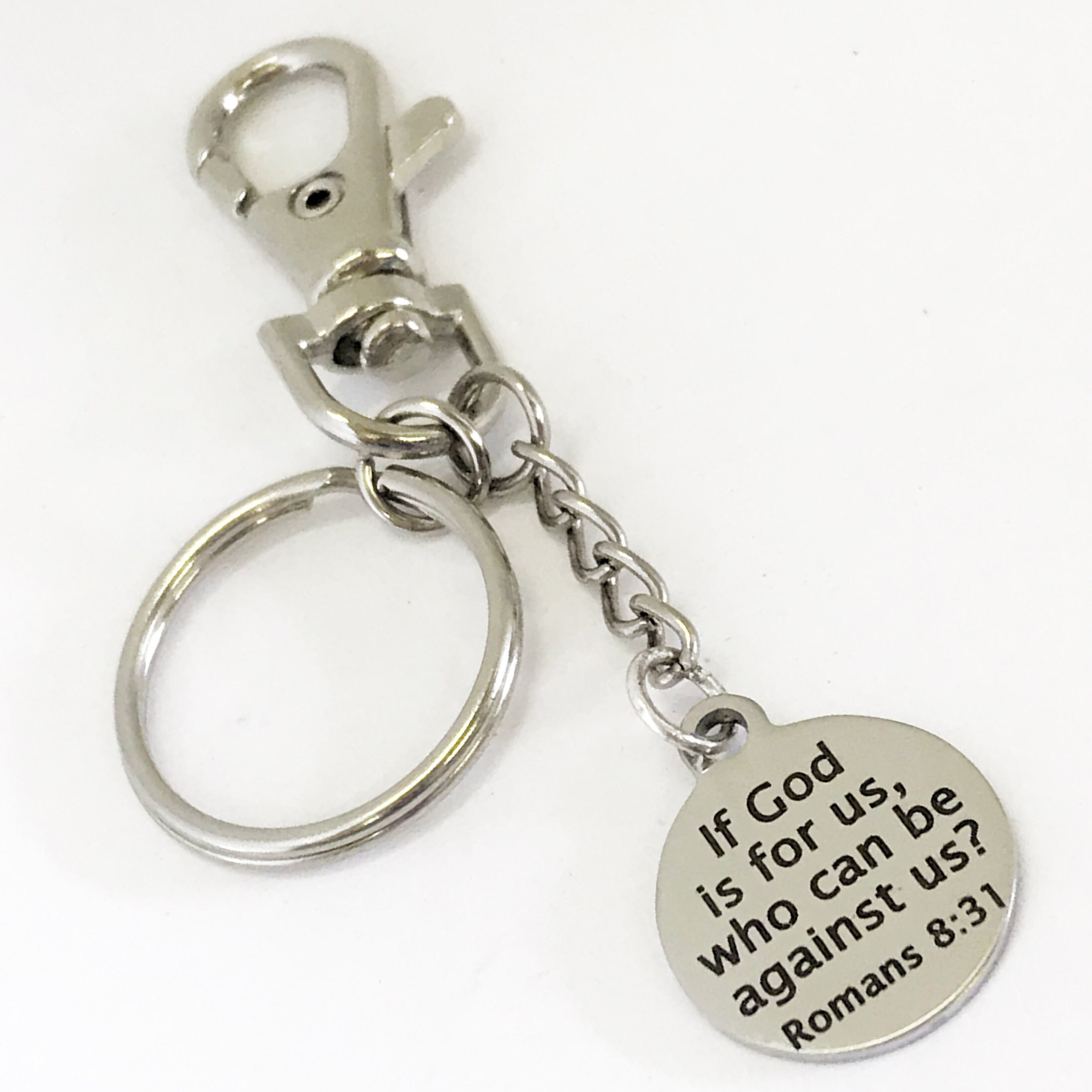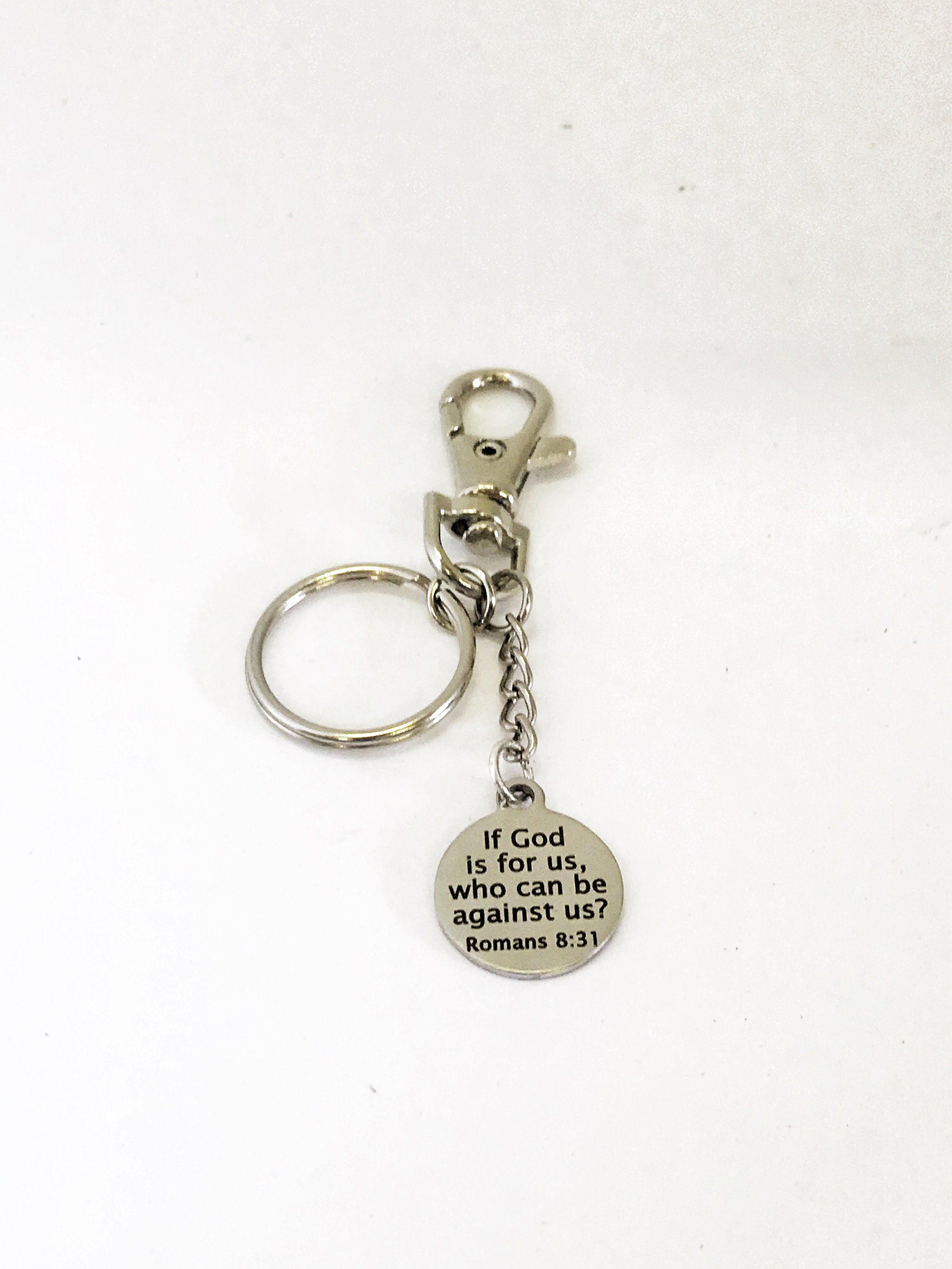 This is a great Christian keychain gift to remind us that if God is for us, it doesn’t matter who is against us. It has a stainless steel laser engraved charm with “If God is for us, who can be against us” from Romans 8:31 on it.