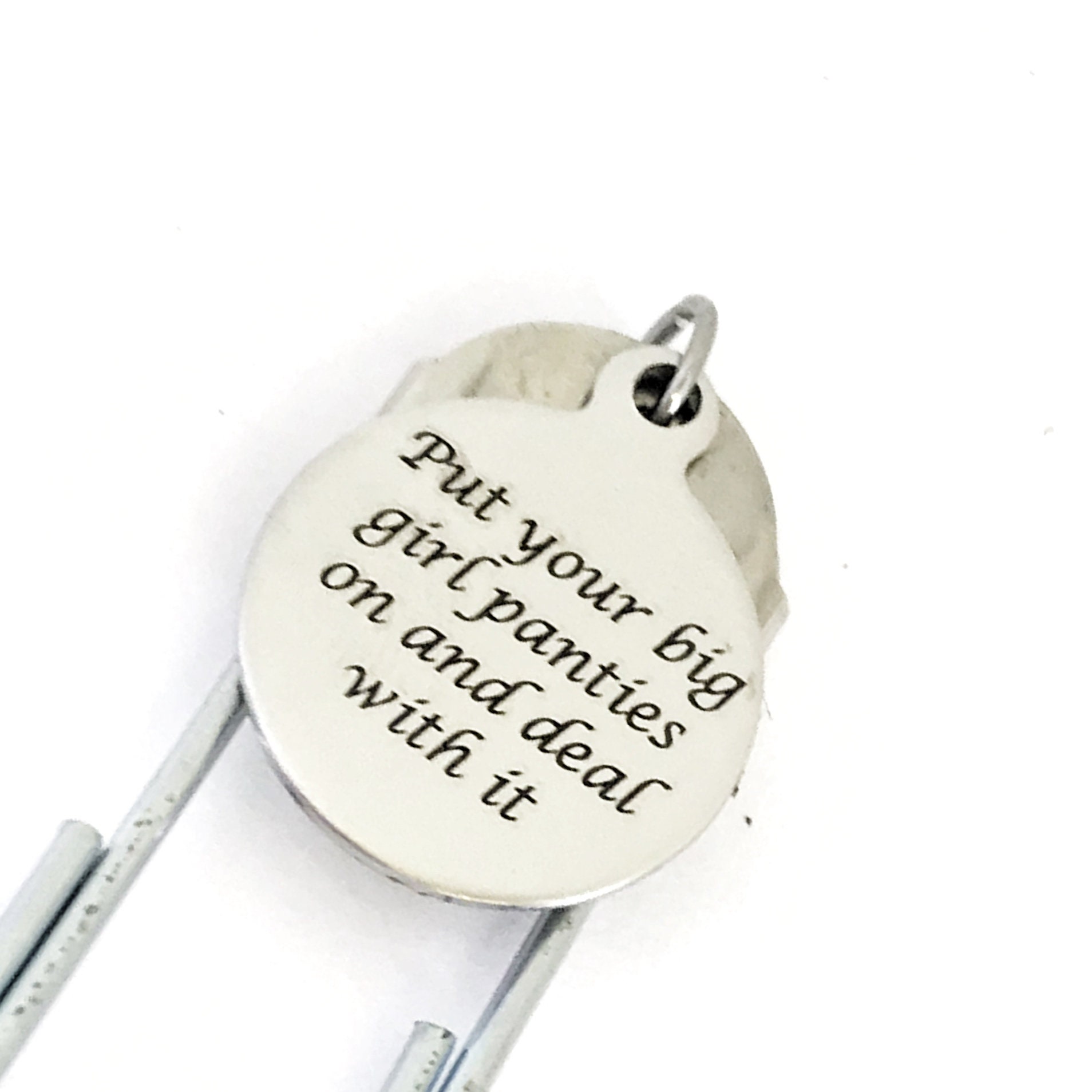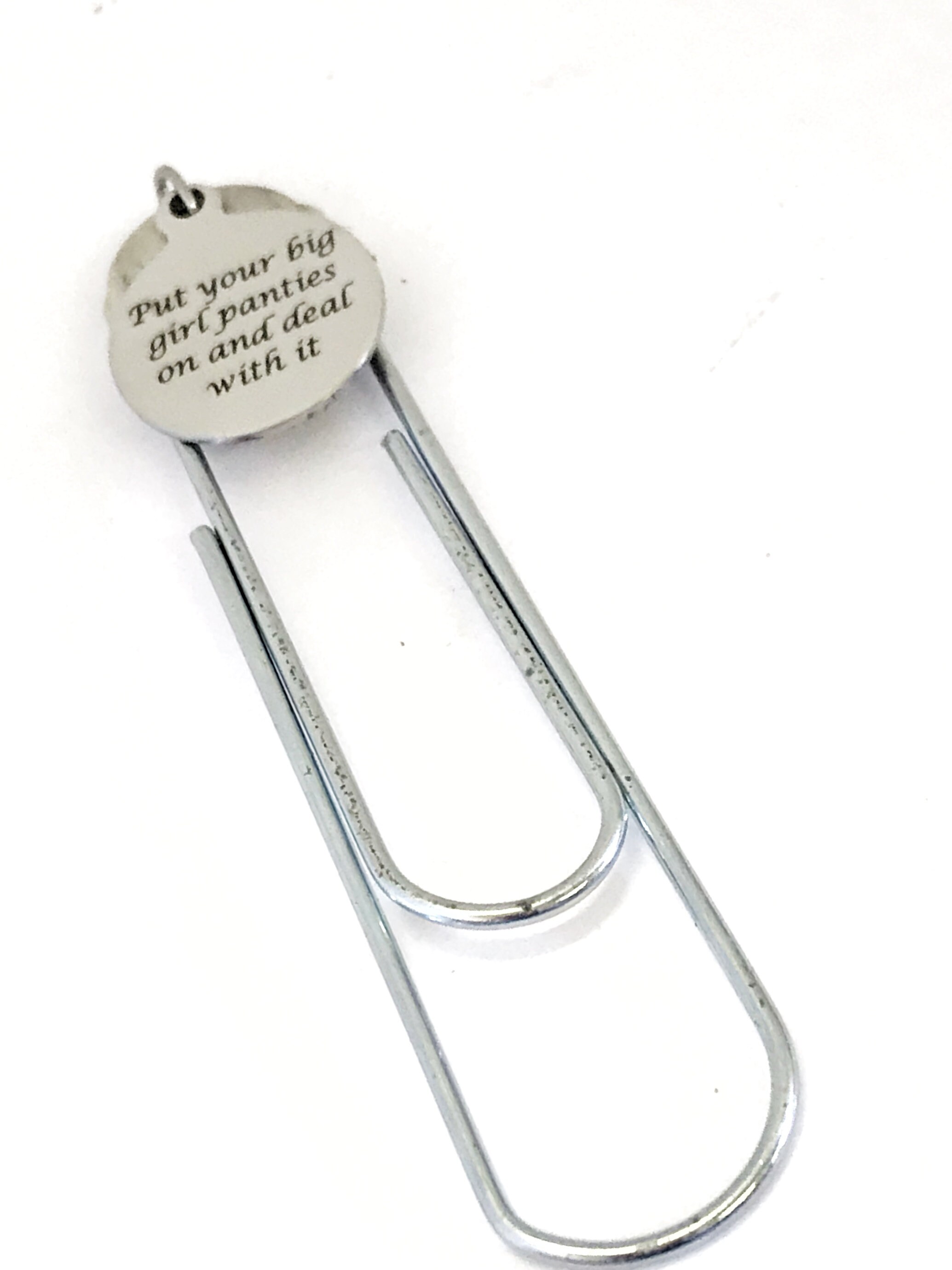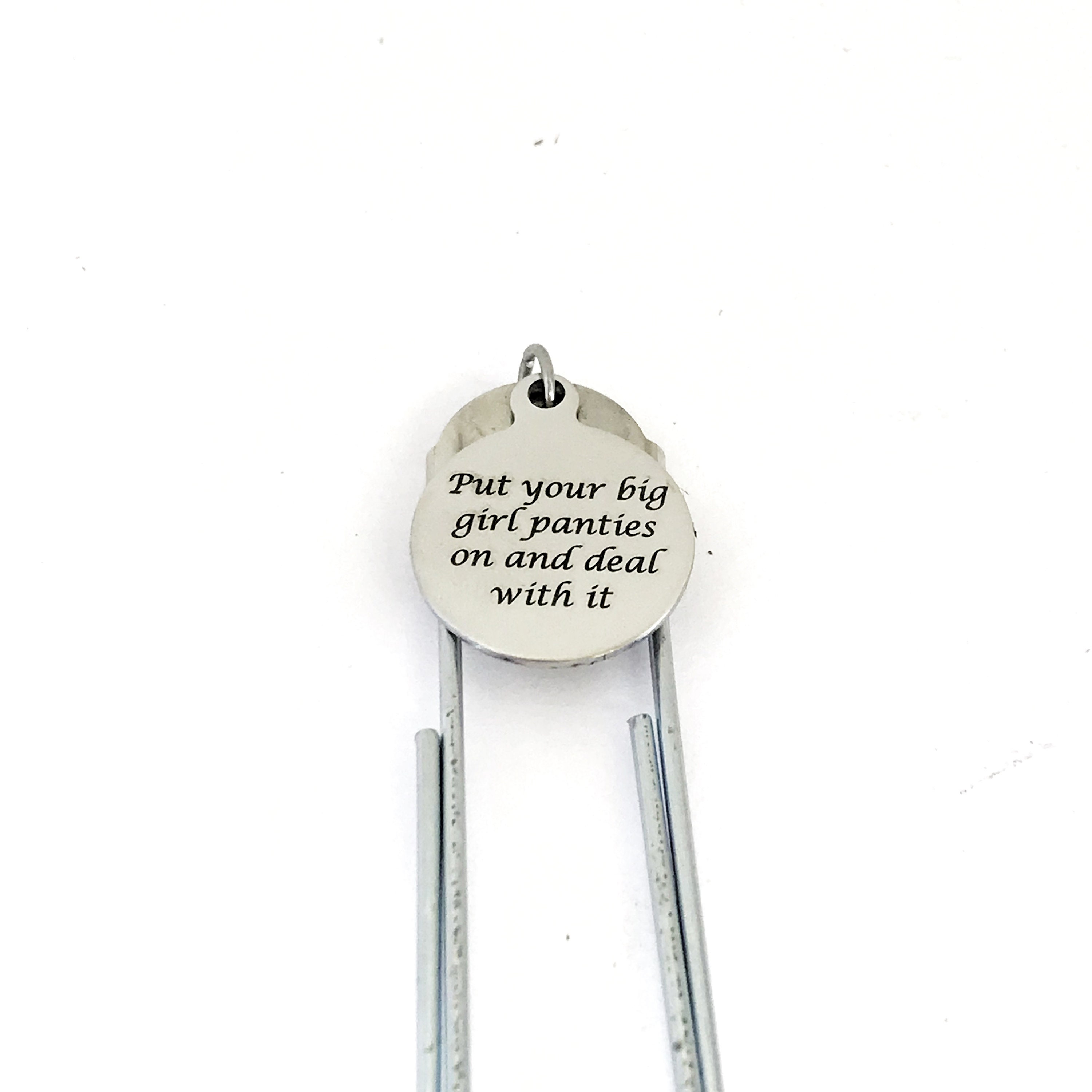 This is a great planner paper clip bookmark that would make a great gift to remind someone that we have to deal with what life throws at us. This paper clip bookmark has a stainless steel laser engraved charm with “Put your big girl panties on and deal with it” on it.
