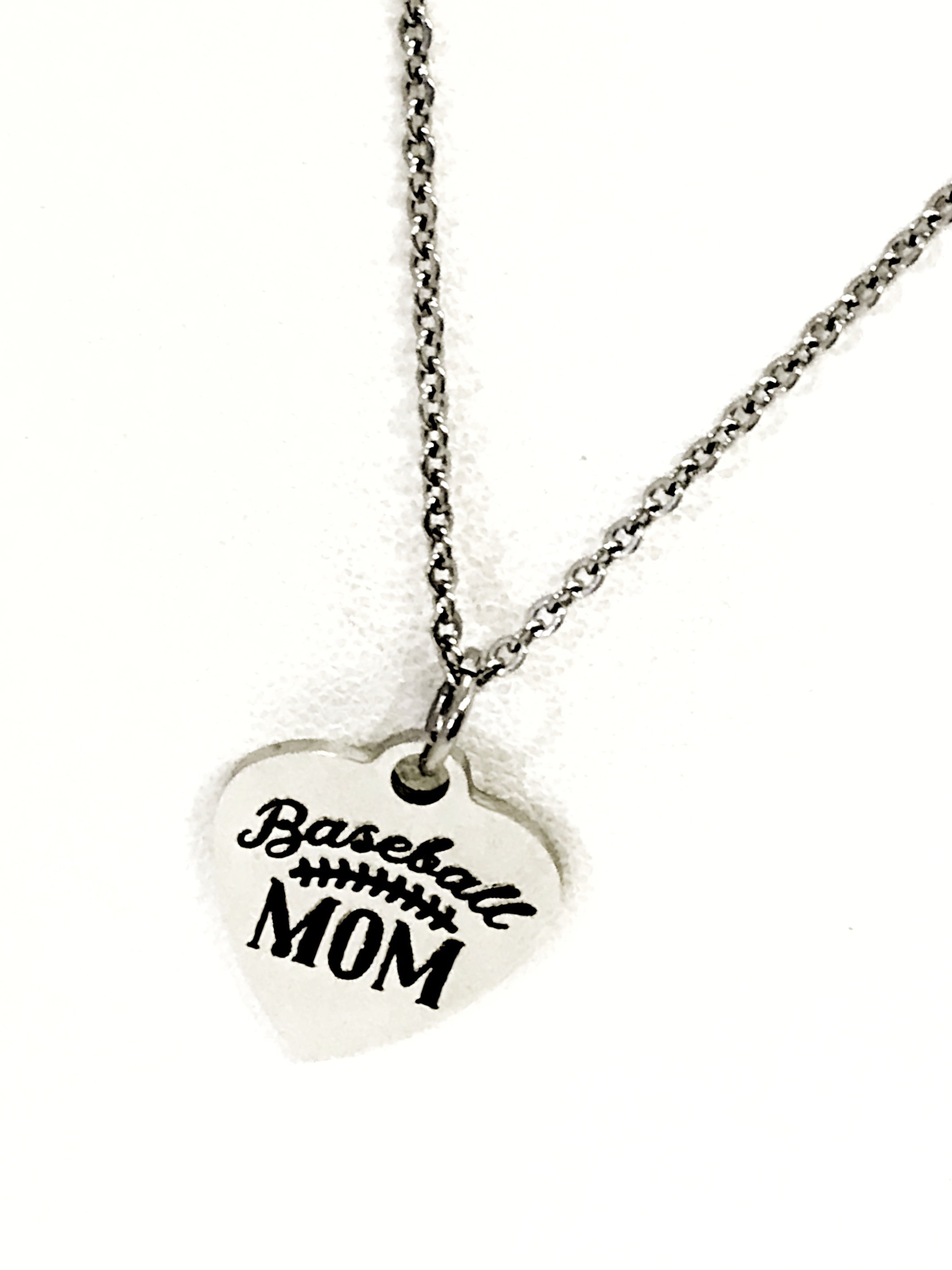 Some people wait their entire life to meet their favorite baseball player and some raise theirs! This beautiful necklace is a wonderful necklace to give to the favorite baseball mom in your life or to wear to show how happy you are to be a baseball mom. The pendant is a stainless steel laser engraved heart shaped charm with “Baseball Mom” on it.