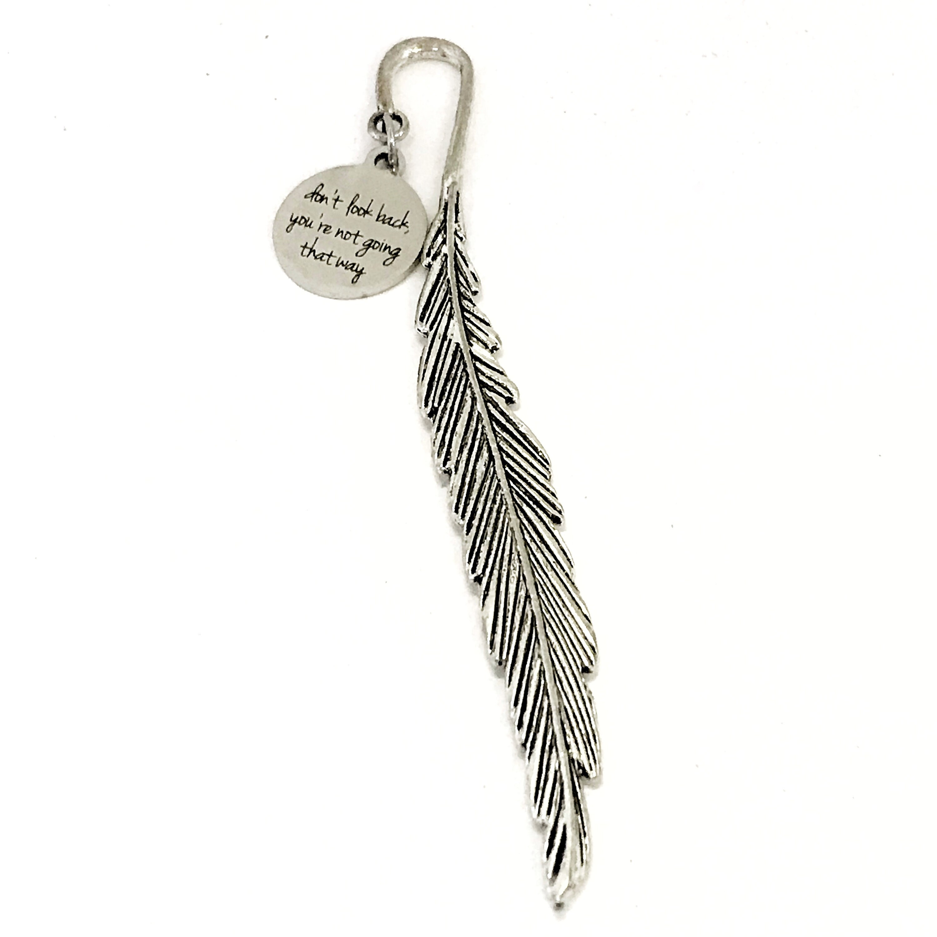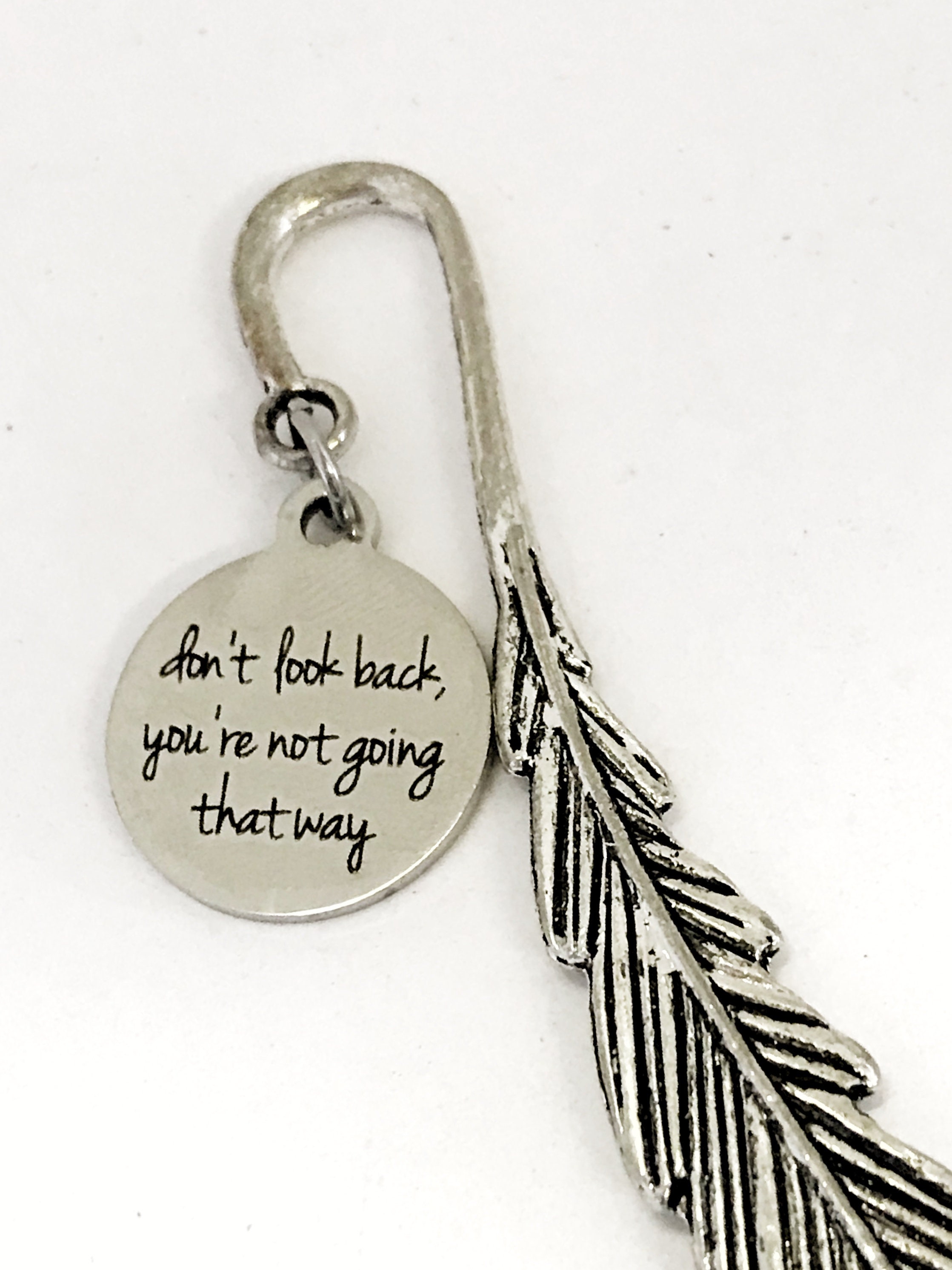 This bookmark would be a great gift to remind someone to keep striving for success and keep moving forward. It has a stainless steel laser engraved charm with “don’t look back, you’re not going that way” on it.
