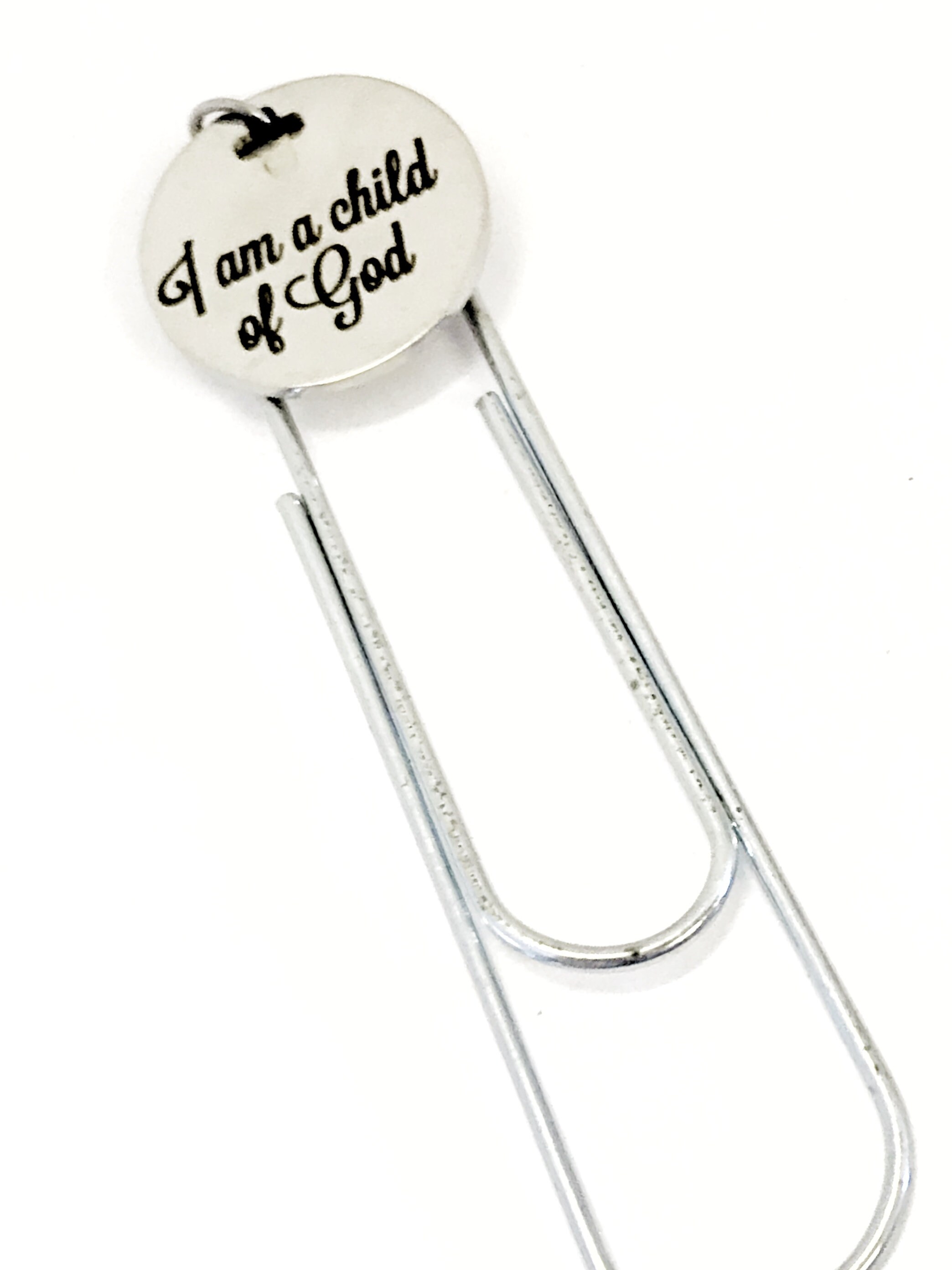 This is a great Christian encouragement bookmark. This paper clip bookmark has a stainless steel laser engraved charm with “I am a child of God” on it. It can be used as a bookmark, page marker, or planner book mark.