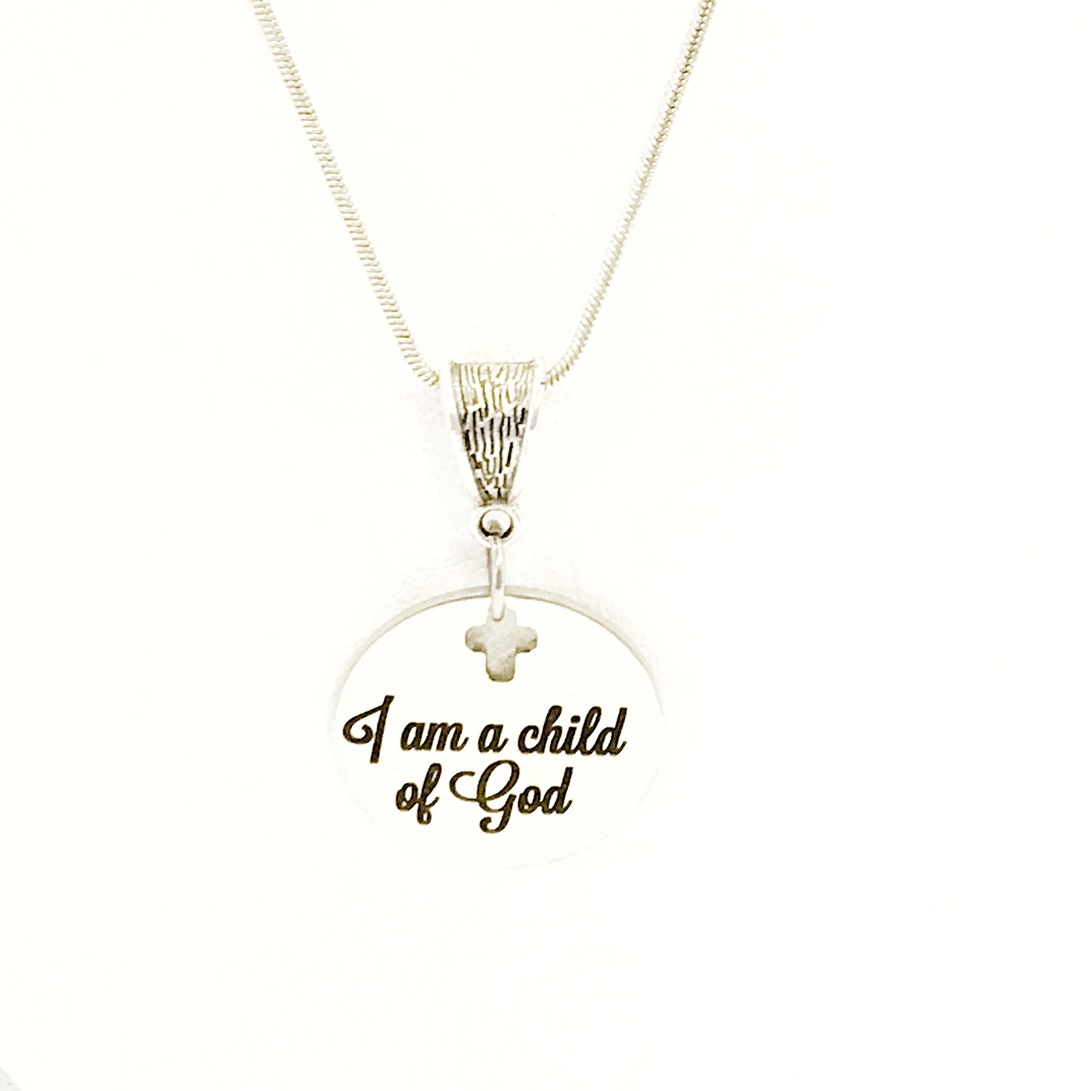 This is a beautiful necklace the would be a wonderful baptism gift or a gift to remind the wearer that they are indeed a child of God. It has “I am a Child of God” on it.
