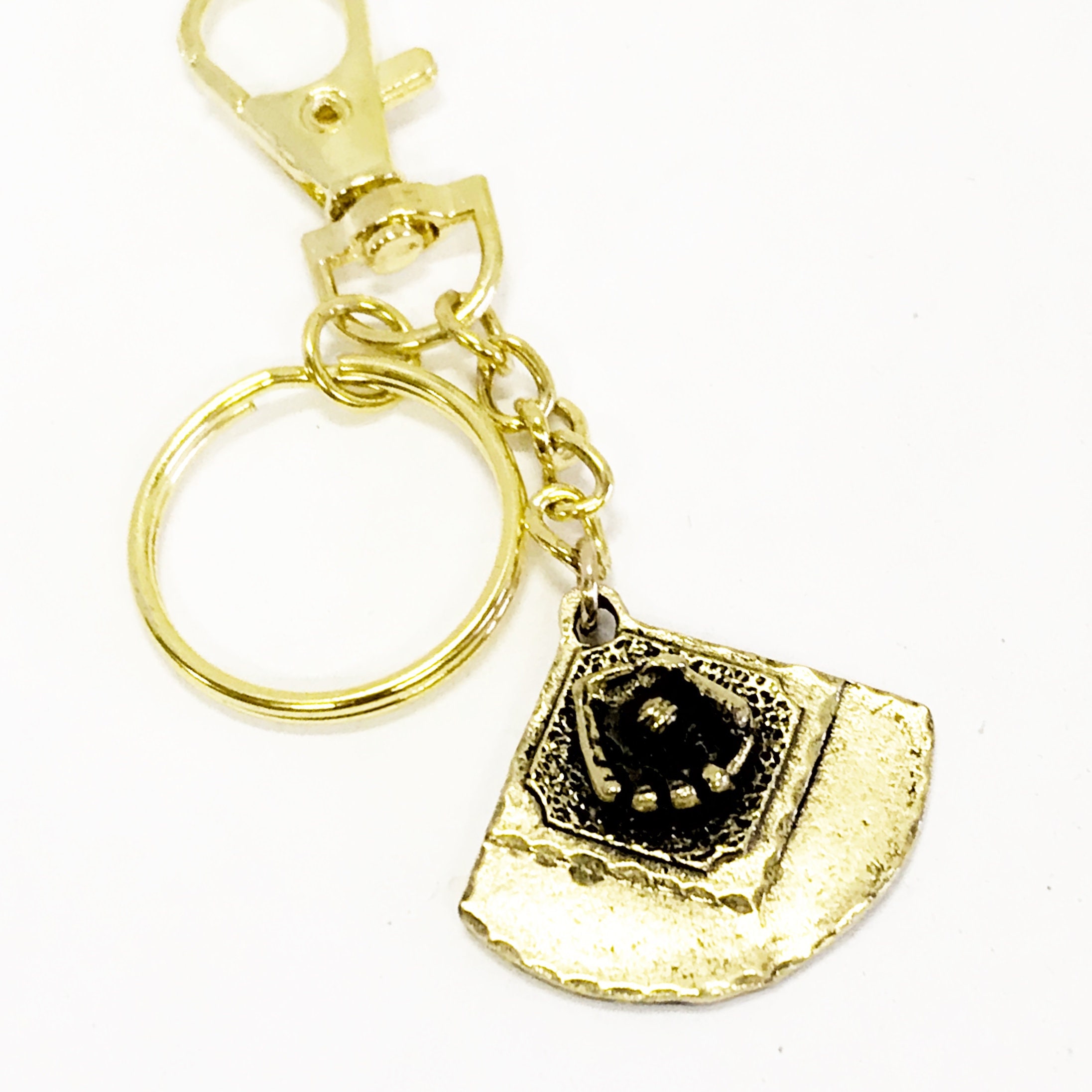This is a great goldtone keychain gift . The keyring can be clipped onto your bag to make it easy to access without digging to the bottom of the bag. It has a goldplated softball field, glove and ball charm on it.