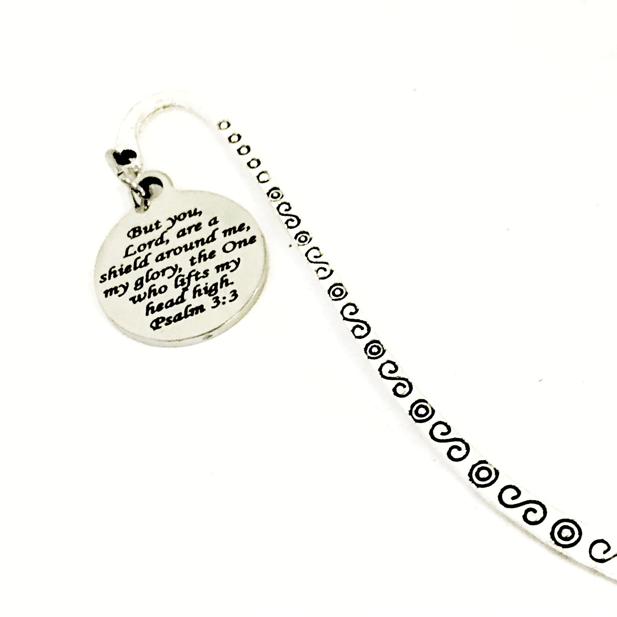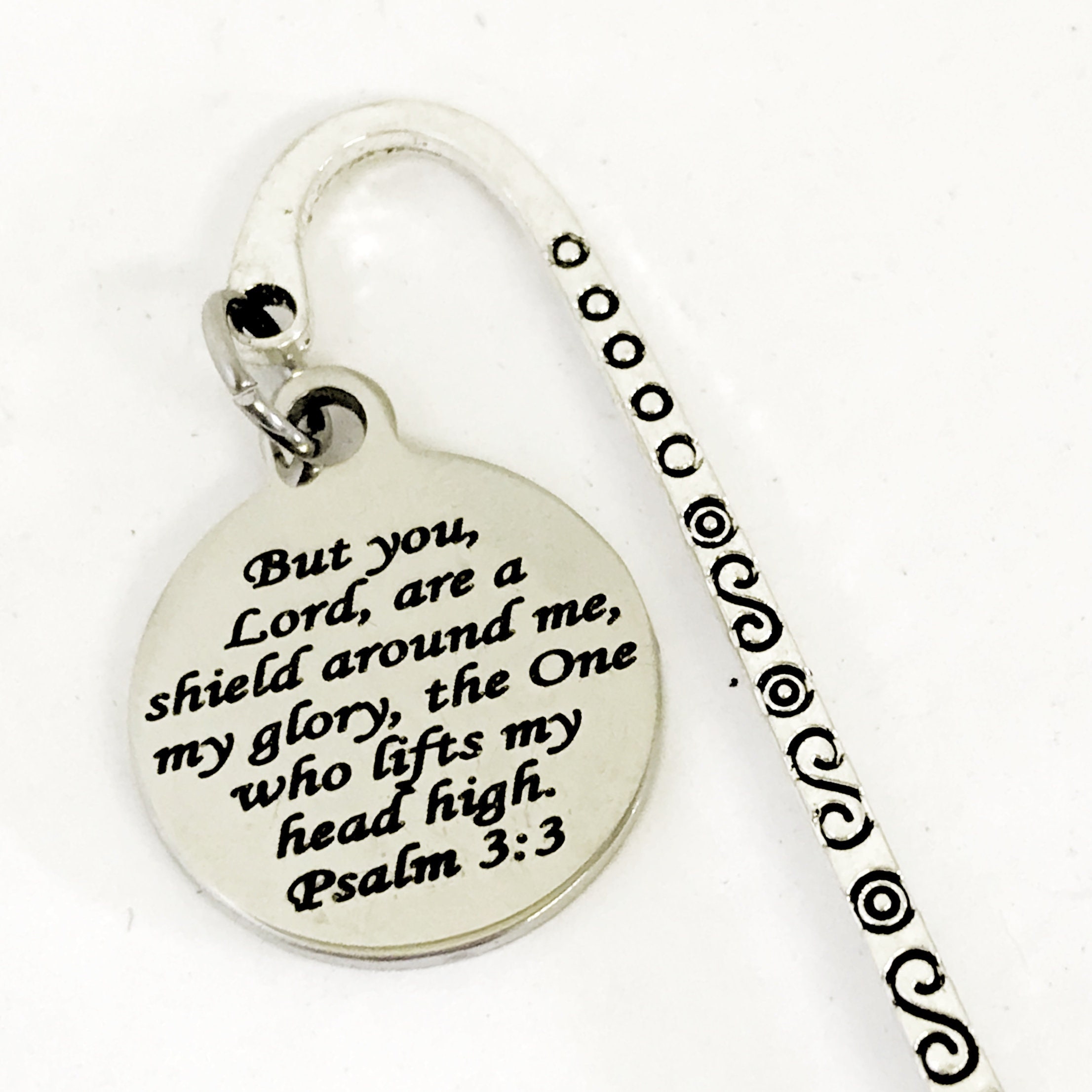 This great bookmark gift is a wonderful reminder to someone that the Lord is our shield and lifts our head high. It is a bookmark with a stainless steel laser engraved charm with “But you, Lord, are a shield around me, my glory, the One who lifts my head high” from Psalm 3:3 on it.