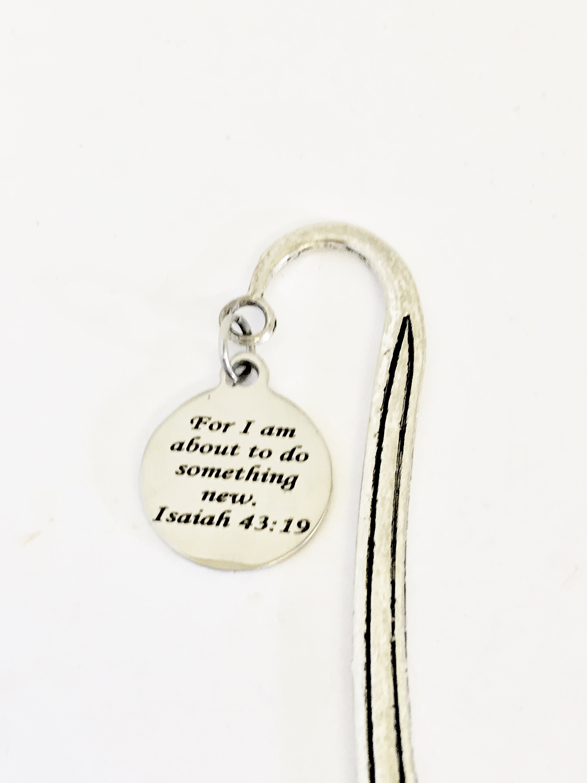 This bookmark would be a great gift for someone that that needs a reminder that God can start something new in their life. It has a stainless steel laser engraved charm with “For I am about to do something new” from Isaiah 43:19 on it. The bookmark would be a great gift for a reader or for use in a planner or journal.