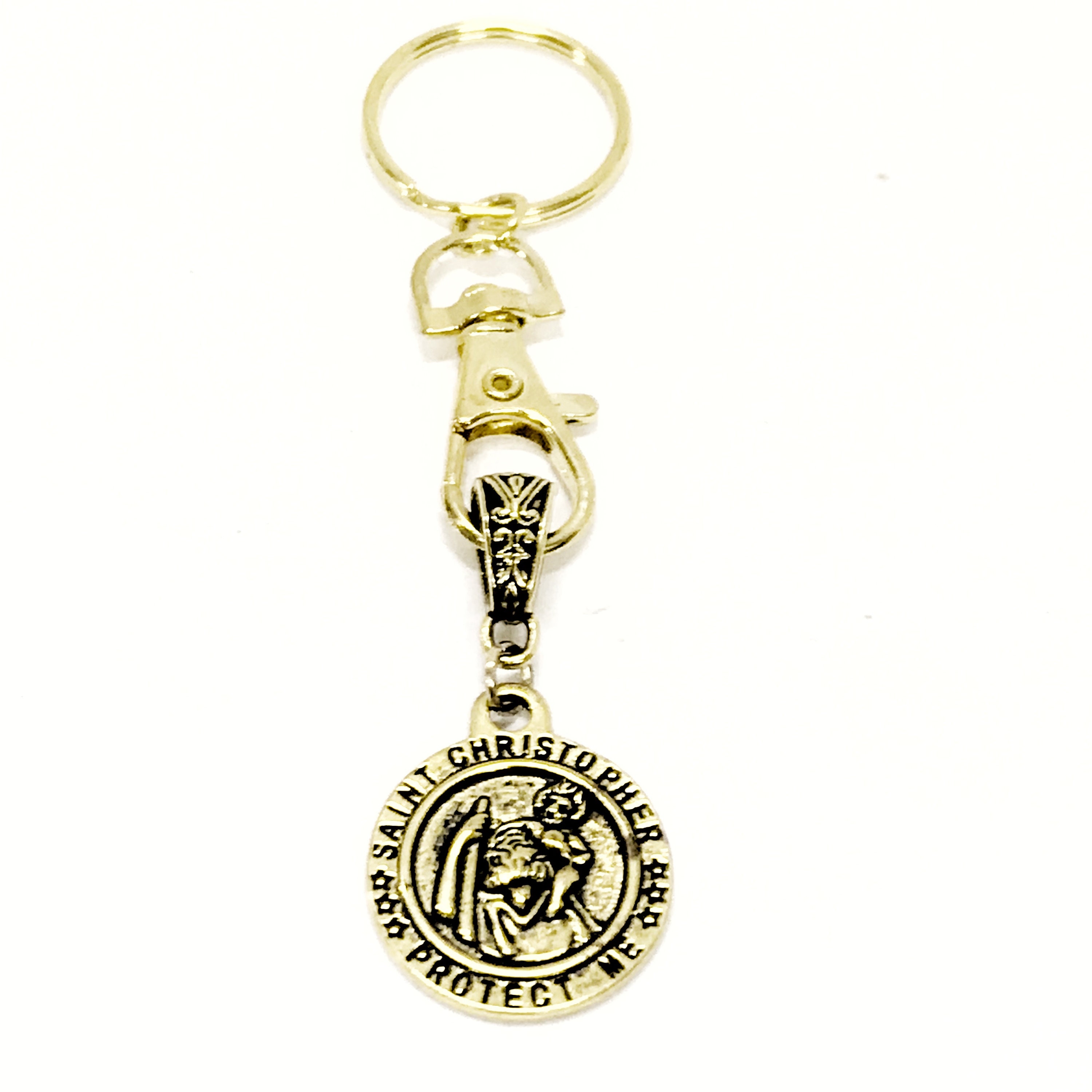 This is a great keychain that has a goldtone St. Christopher on it. These keychains are dual-purpose items in that the pendant piece can be removed from the keychain and worn as a necklace pendant.