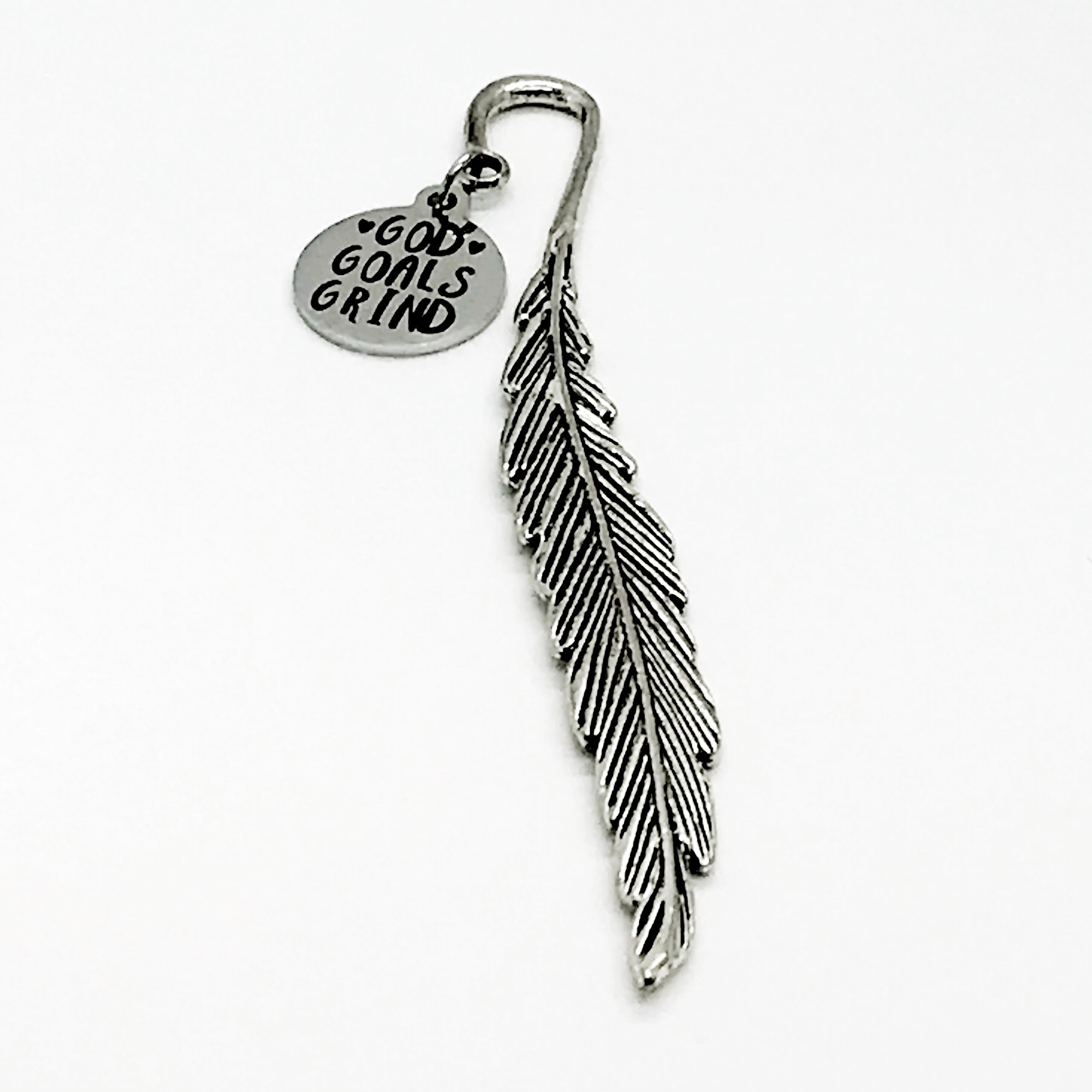 This bookmark would be a great gift to remind someone to put God first, set goals and then grind to make them happen. It has a stainless steel laser engraved charm with “God Goals Grind” on it.