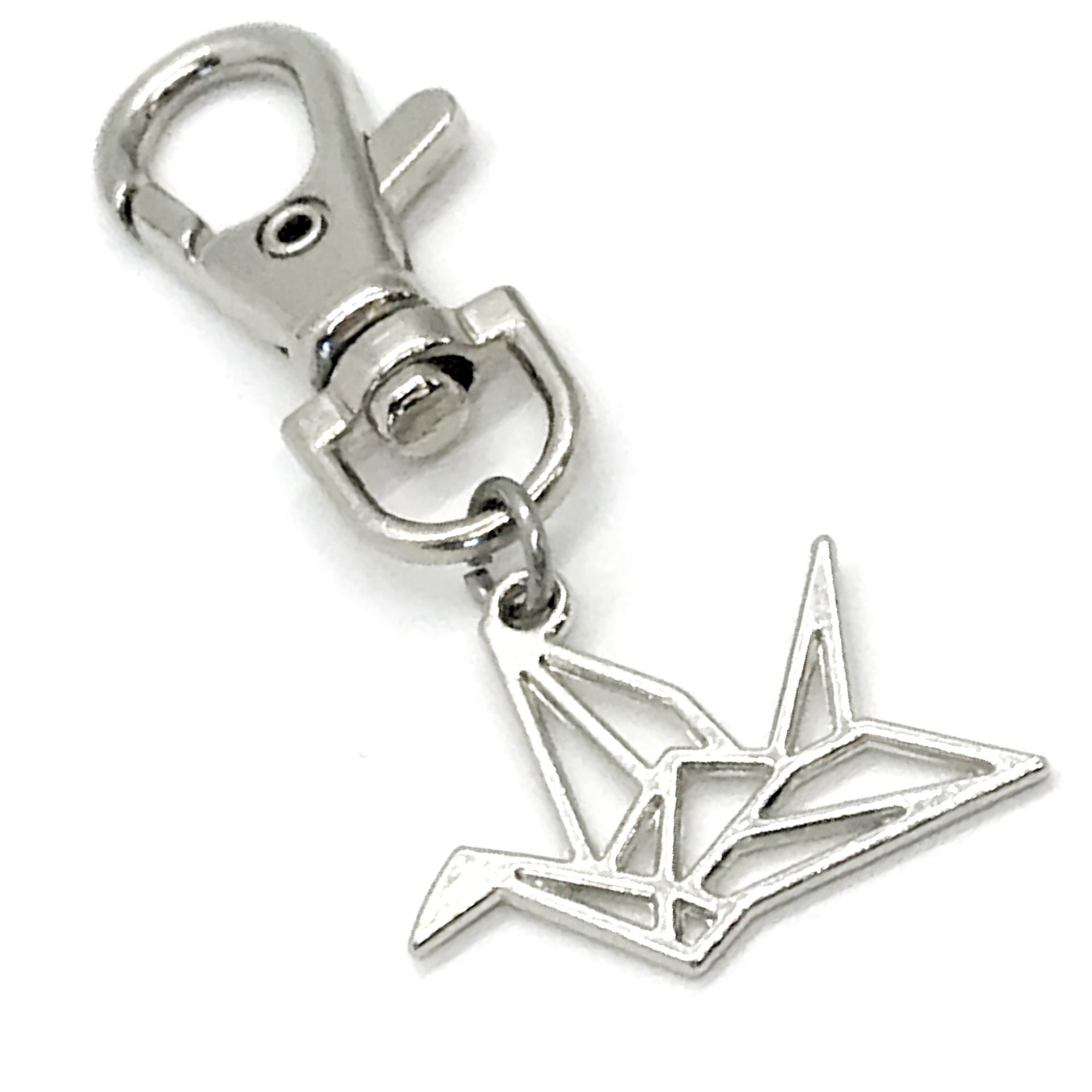 This is a great zipper pull or bag charm clip gift that would be perfect gift of positivity or encouragement. It would be a great charm to clip onto a tote, purse, sports bag, book bag or keychain. It has a silvertone origami crane on it. The Origami crane is known as a symbol of peace, good health and good luck. This would be a great way to wish someone all of these!