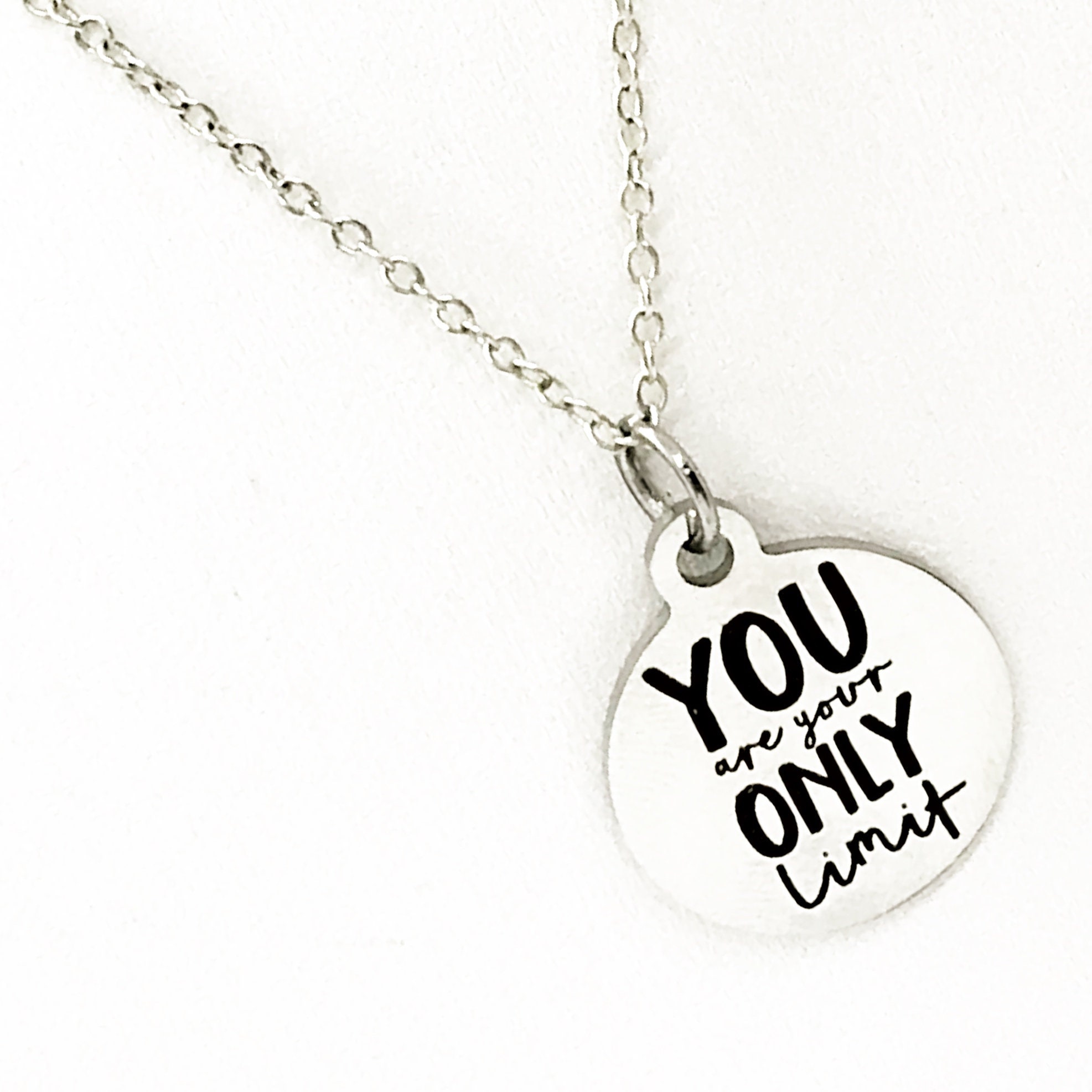 This necklace would make a wonderful gift of encouragement to yourself or someone you love. The pendant is a stainless steel laser engraved pendant with “You are your only limit” on it.