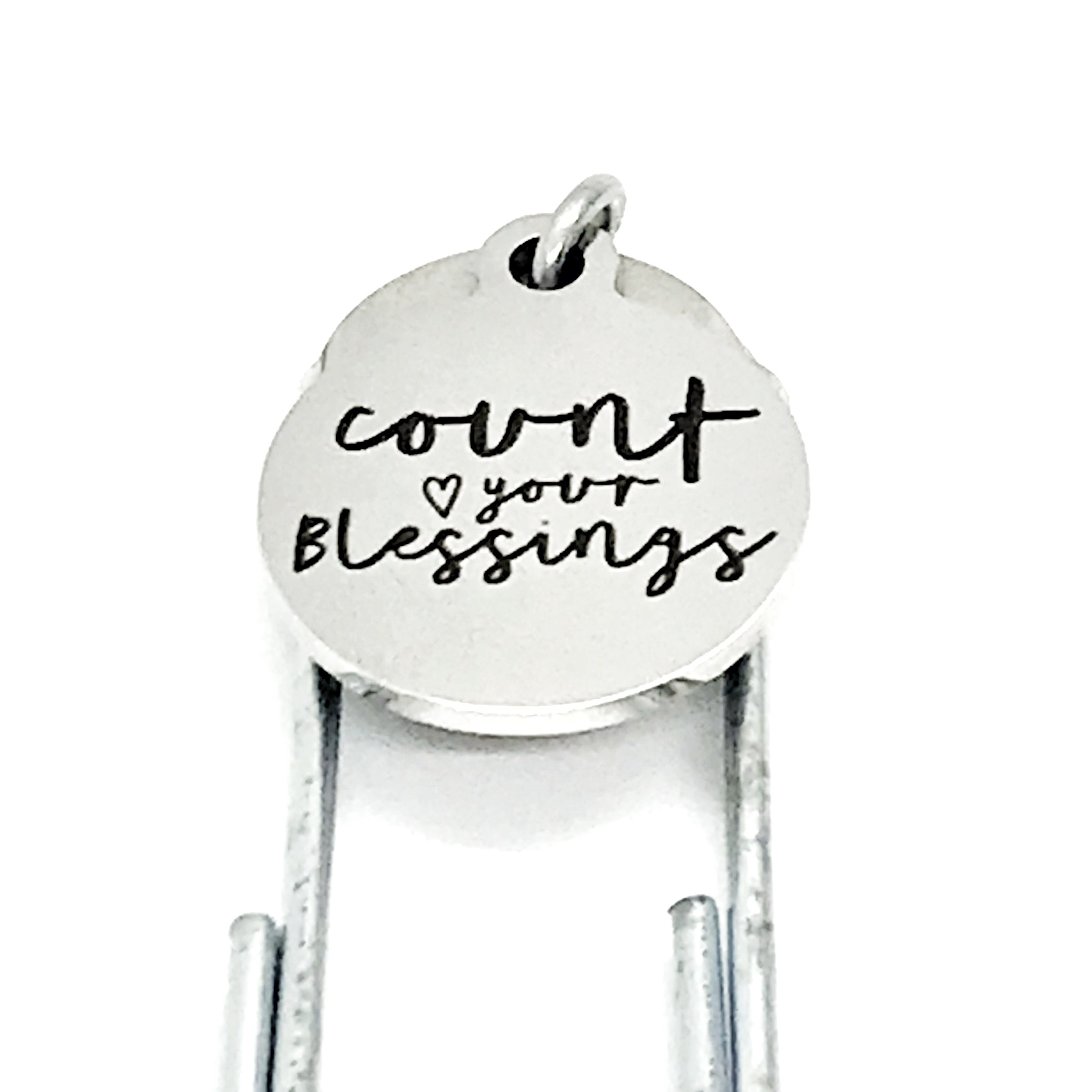This bookmark has stainless steel laser engraved charm with “Count your blessings” on it. It would be a great way to encourage someone!