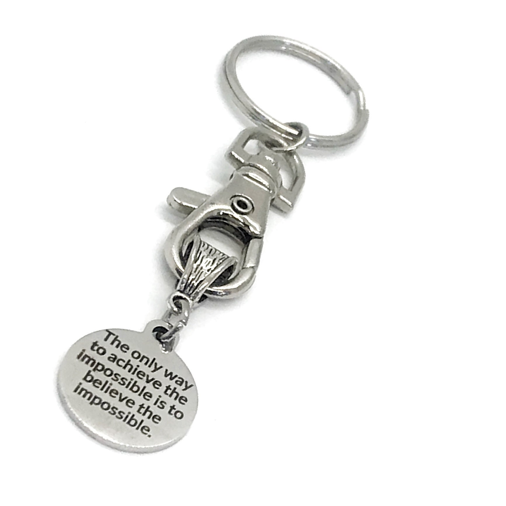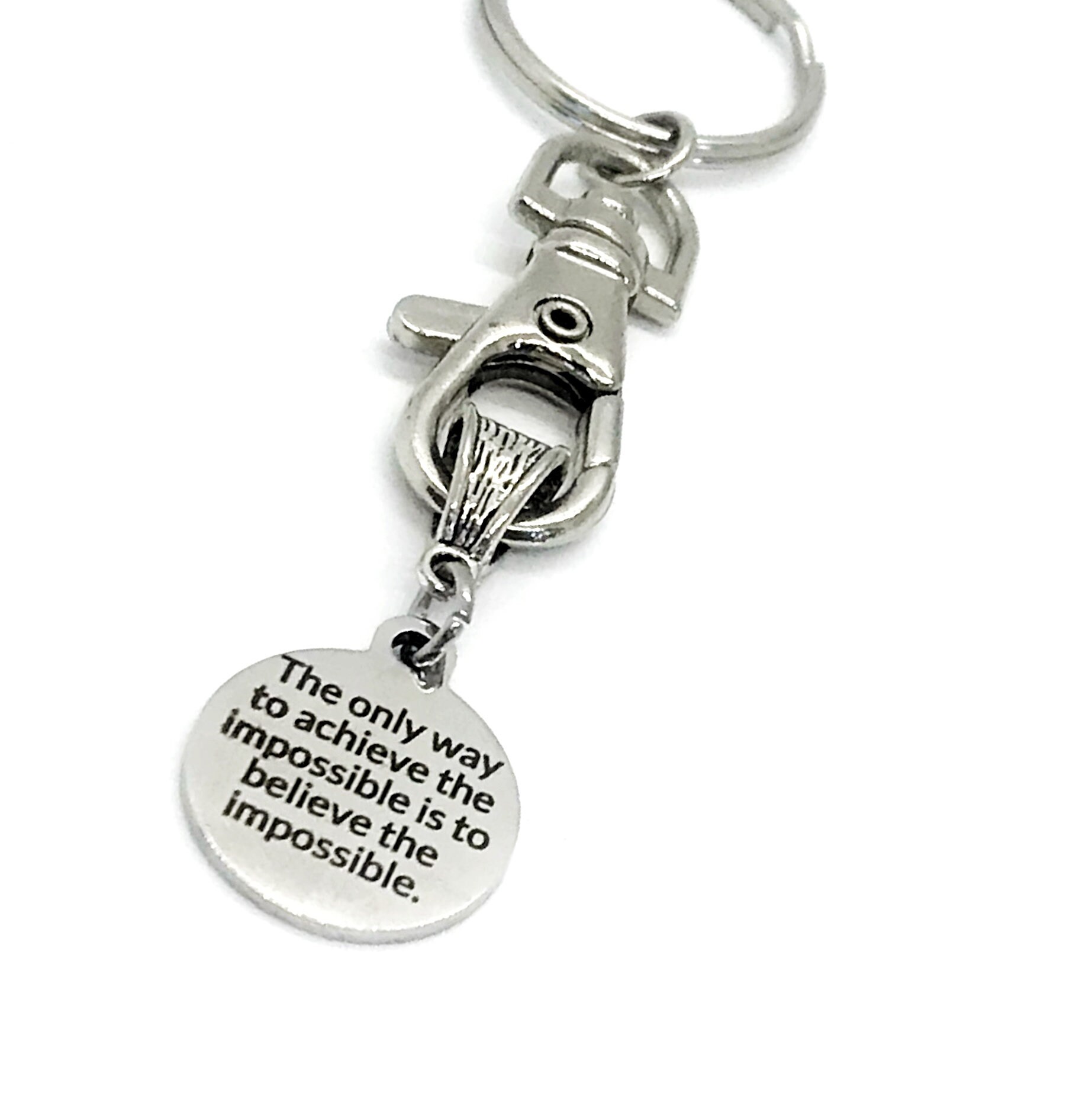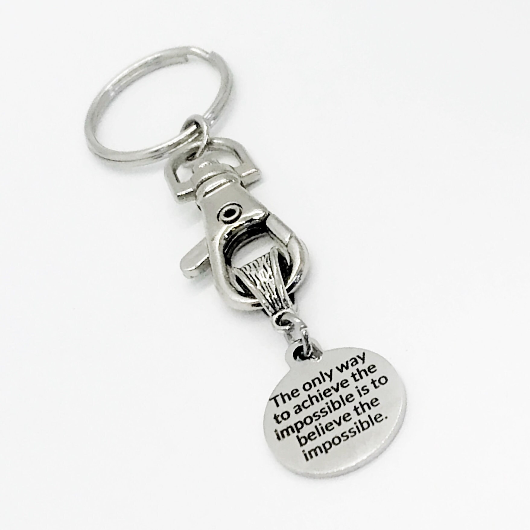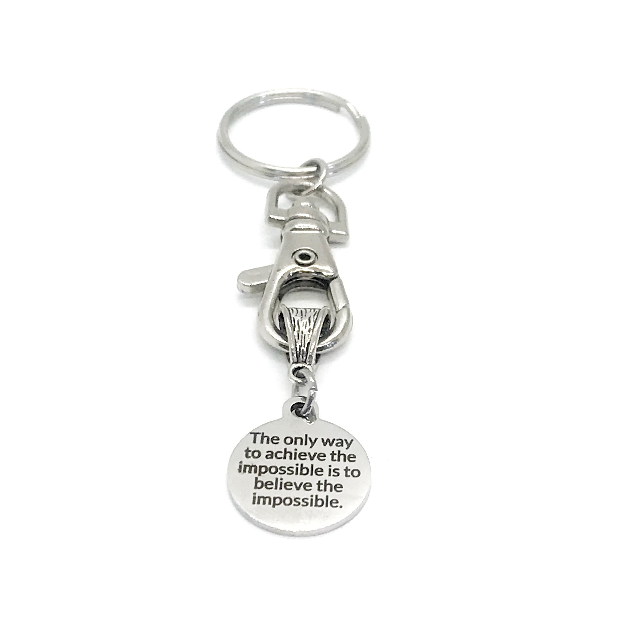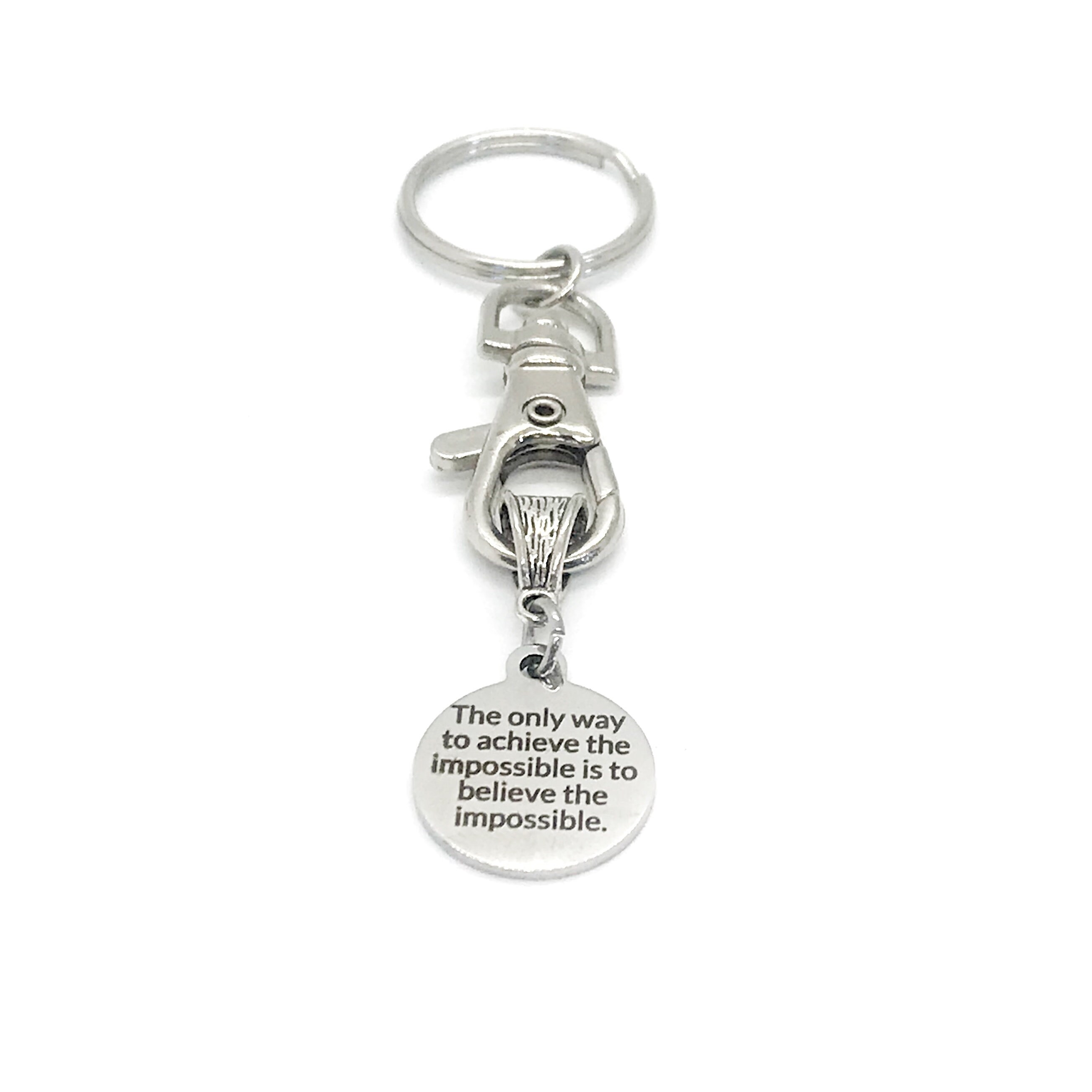 This keychain gift would make a great motivational gift. It has a stainless steel laser engraved charm with “The only way to achieve the impossible is to believe the impossible” on it.