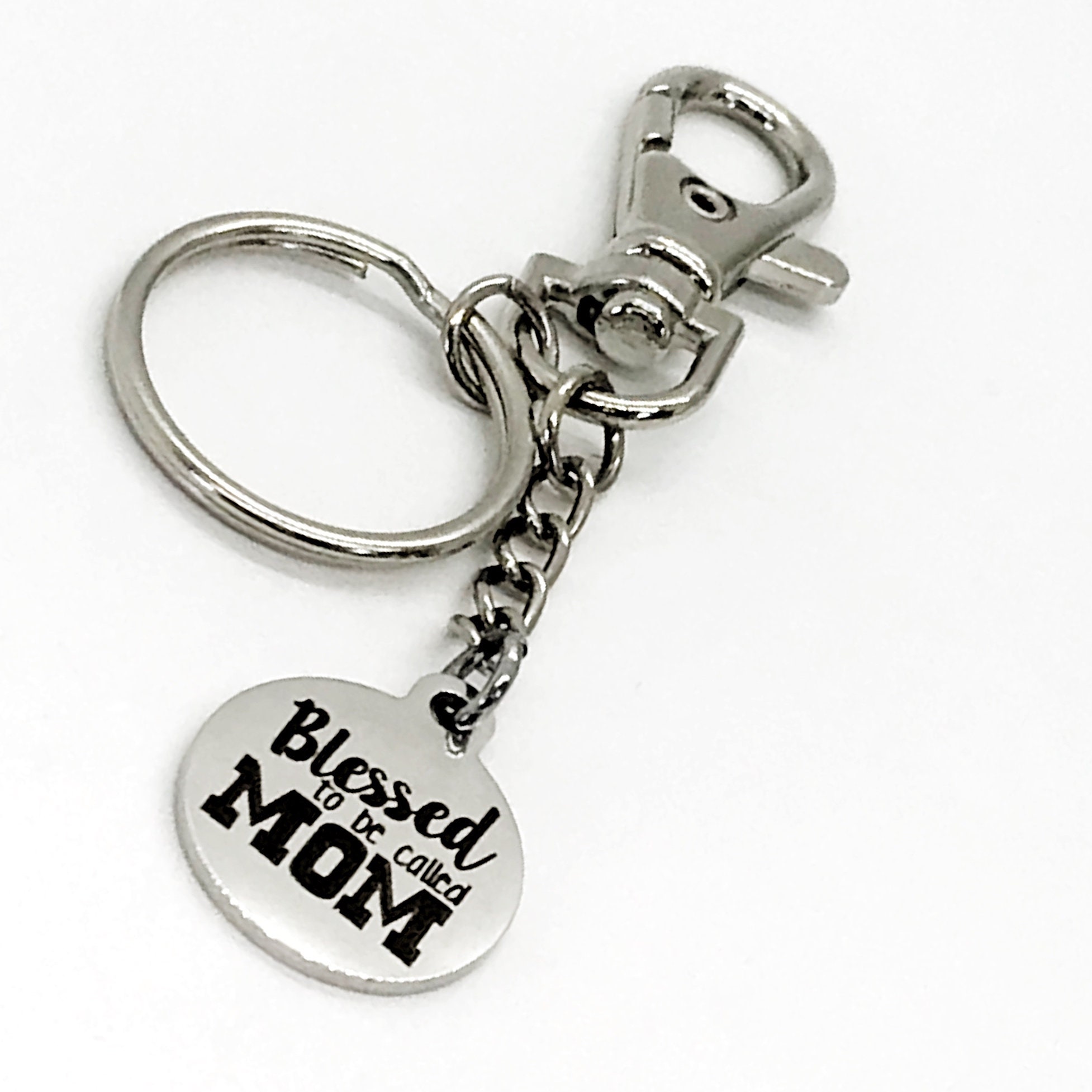 This is a great mom keychain gift . The keyring can be clipped onto your bag to make it easy to access without digging to the bottom of the bag. It has a stainless steel laser engraved charm with “Blessed to be called Mom” on it.