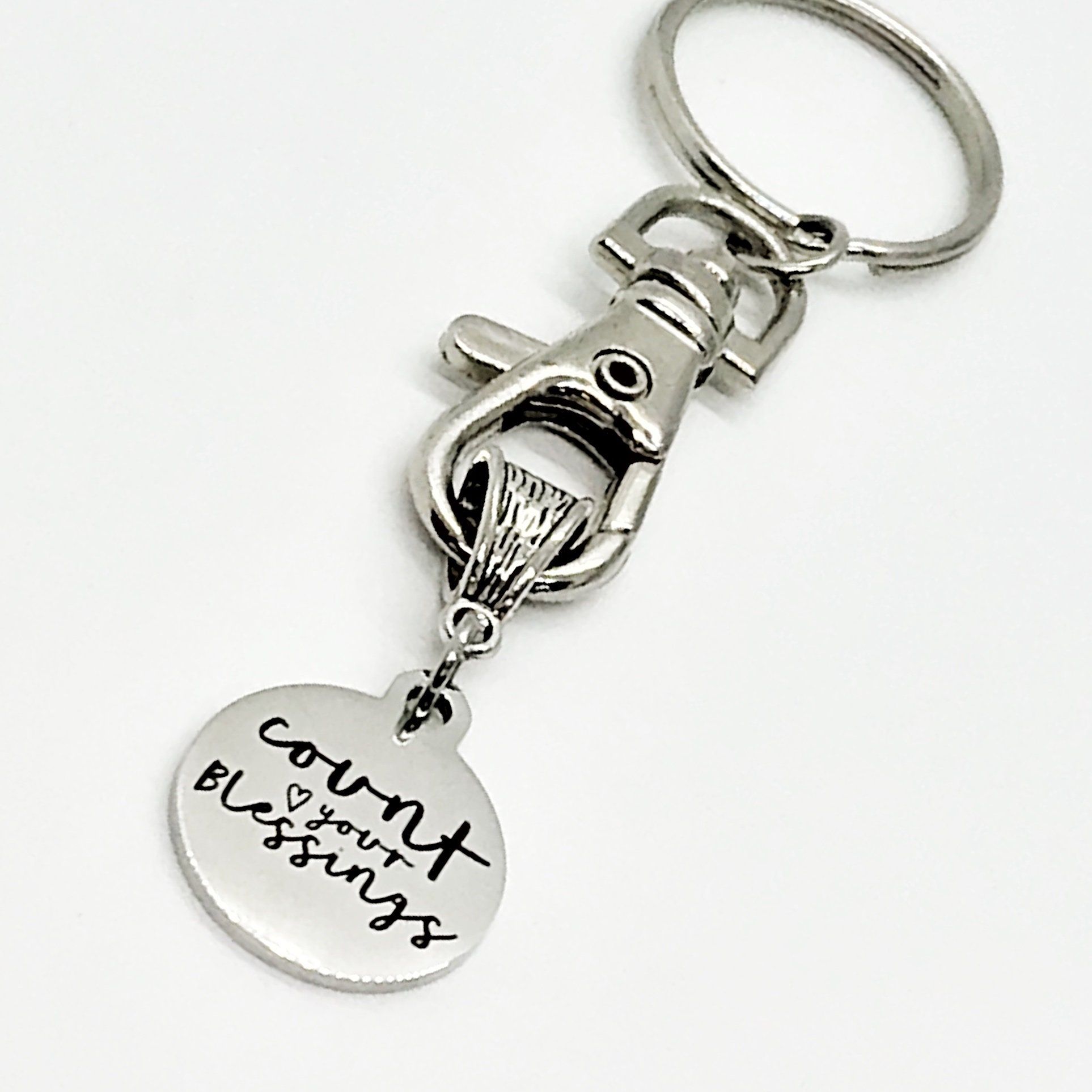 This keychain gift would make a great gift to remind someone of the blessings in their life. It has a stainless steel laser engraved charm with “Count your blessings” on it.