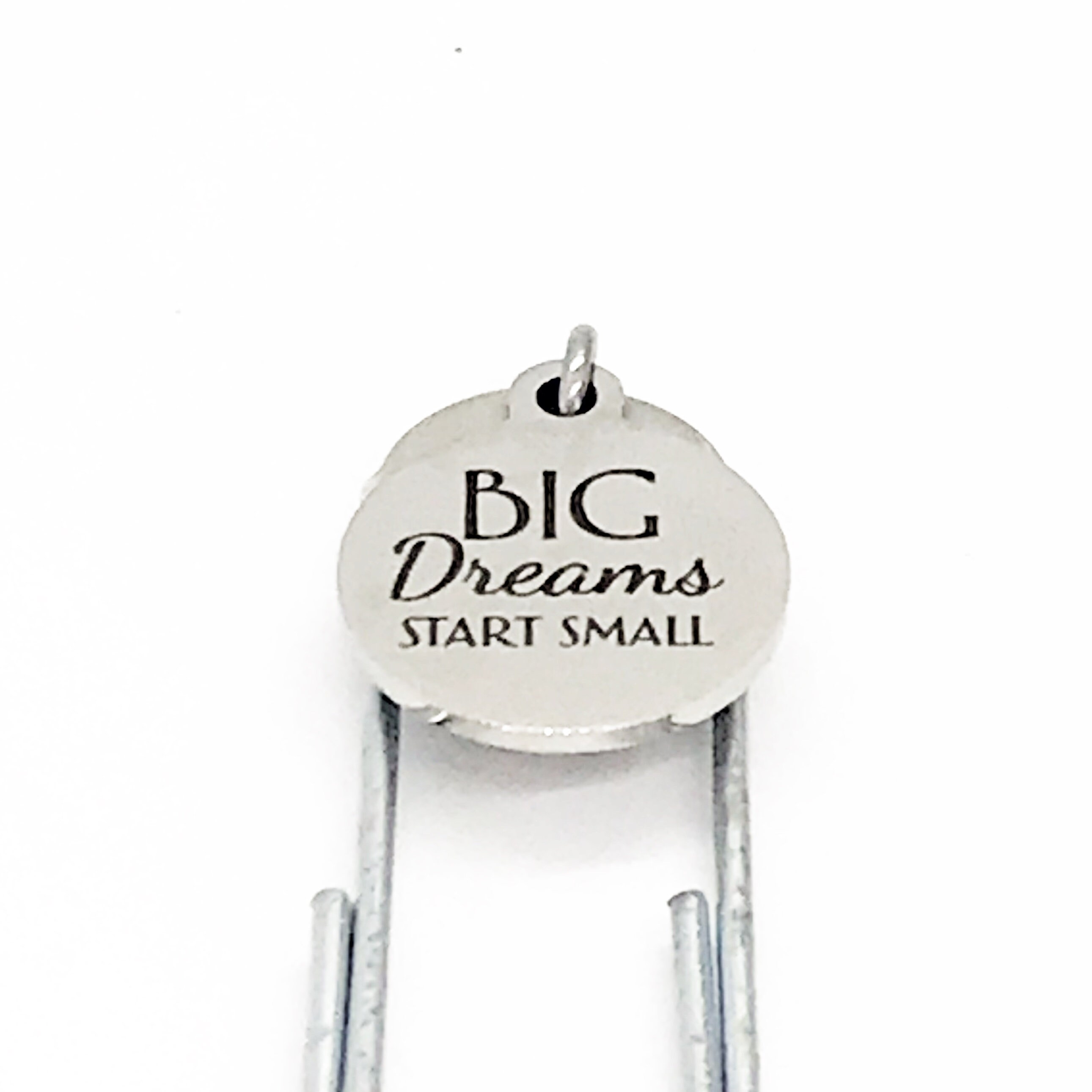 This bookmark has stainless steel laser engraved charm with “Big Dreams start small” on it.