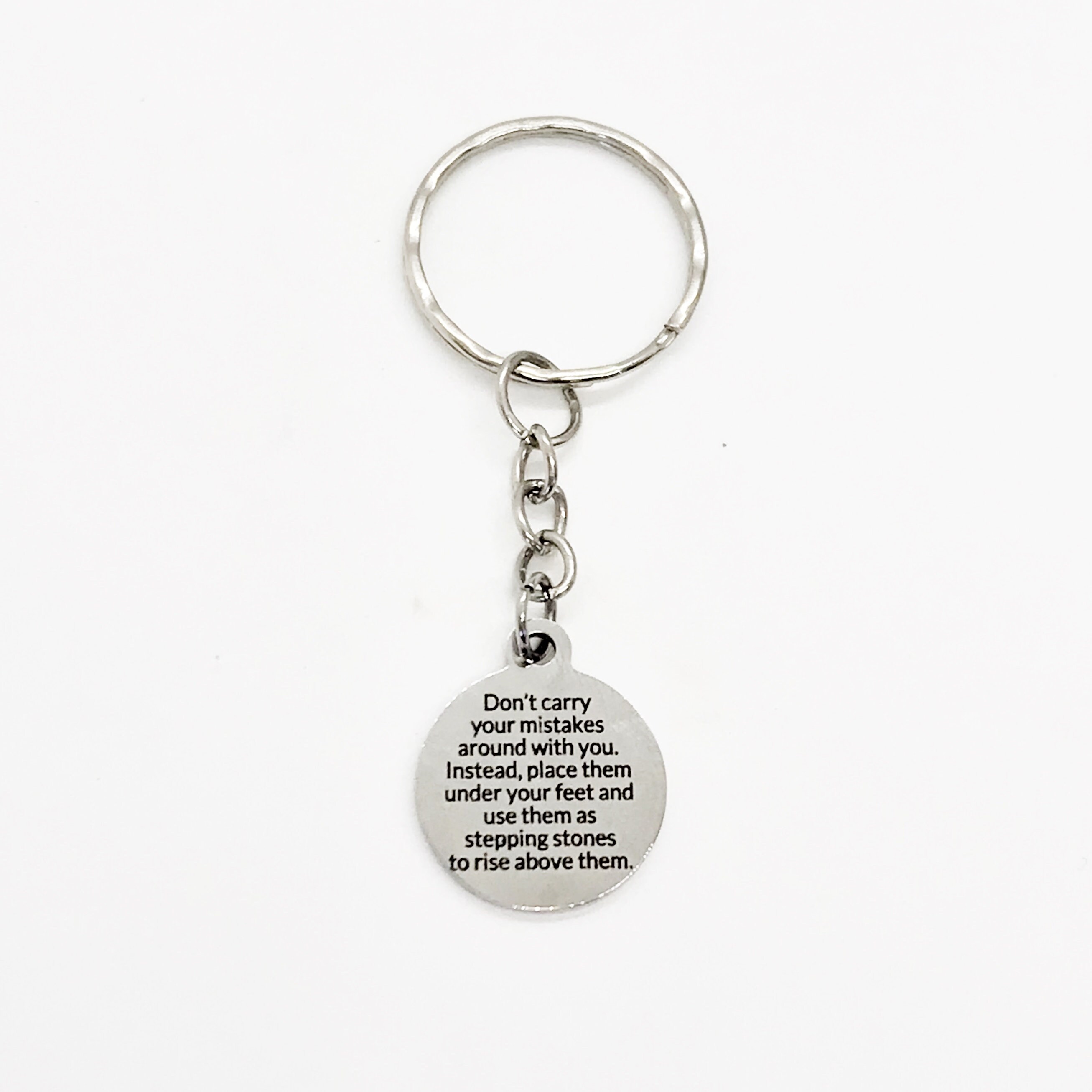 This is a great gift of encouragement! It has a stainless steel laser engraved charm with “Don’t carry your mistakes around with you. Instead, place them under your feet and use them as stepping stones to rise above them." on it.
