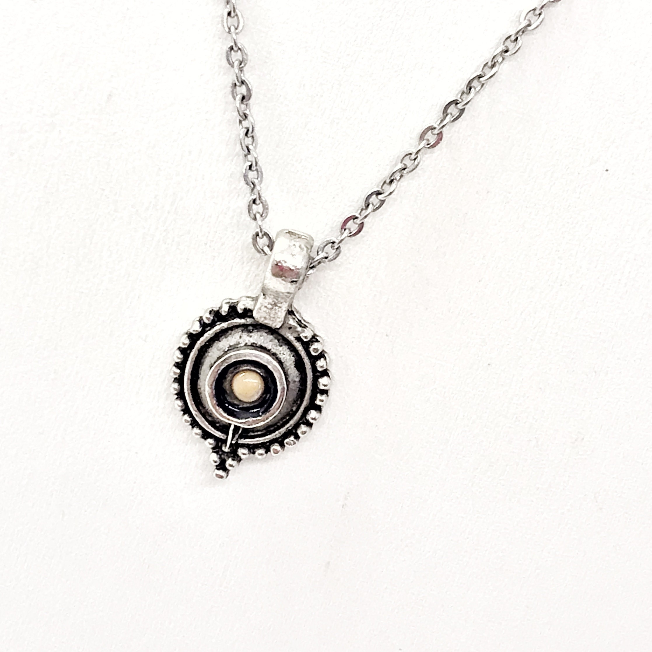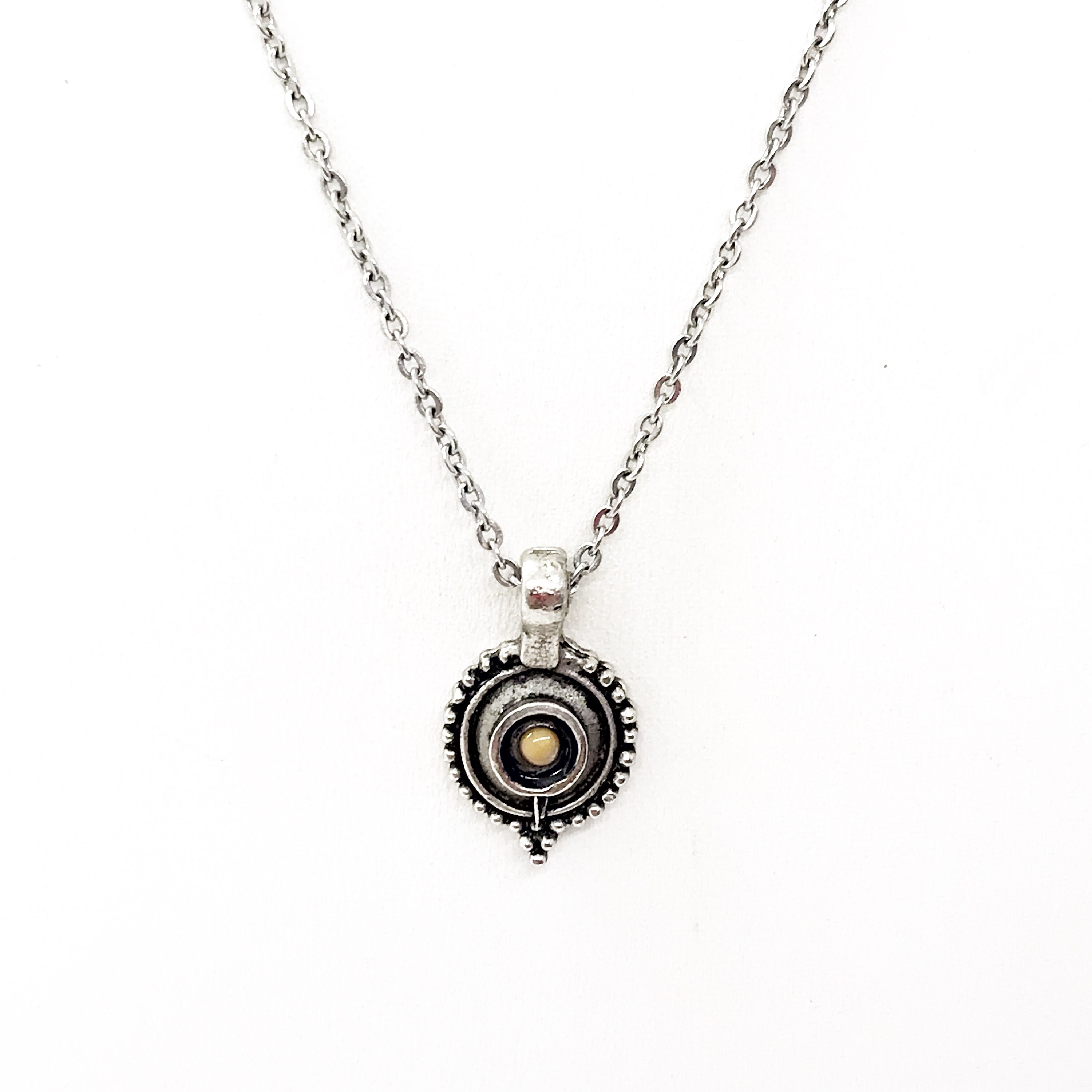 The pendant comes on a stainless steel link chain. This pendant is available on your choice of 16, 18, 20, 22, 24, 26, 28 or 30 inch chain. The pendant is also available for individual purchase if you have another chain on which you would like to wear it. The pendant measures approx. 14mm across.