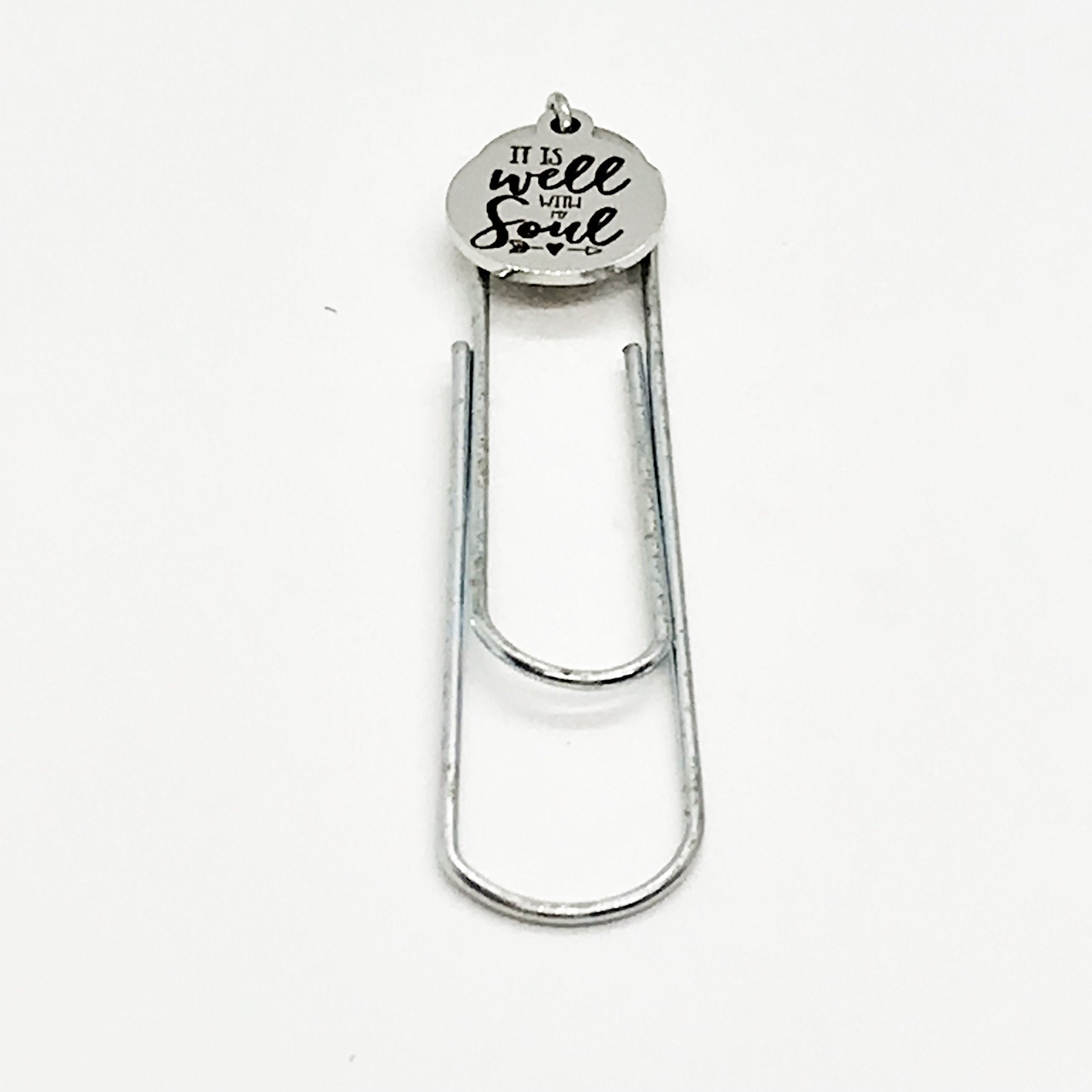 This bookmark has a stainless steel laser engraved charm that says “It is well with my soul”.