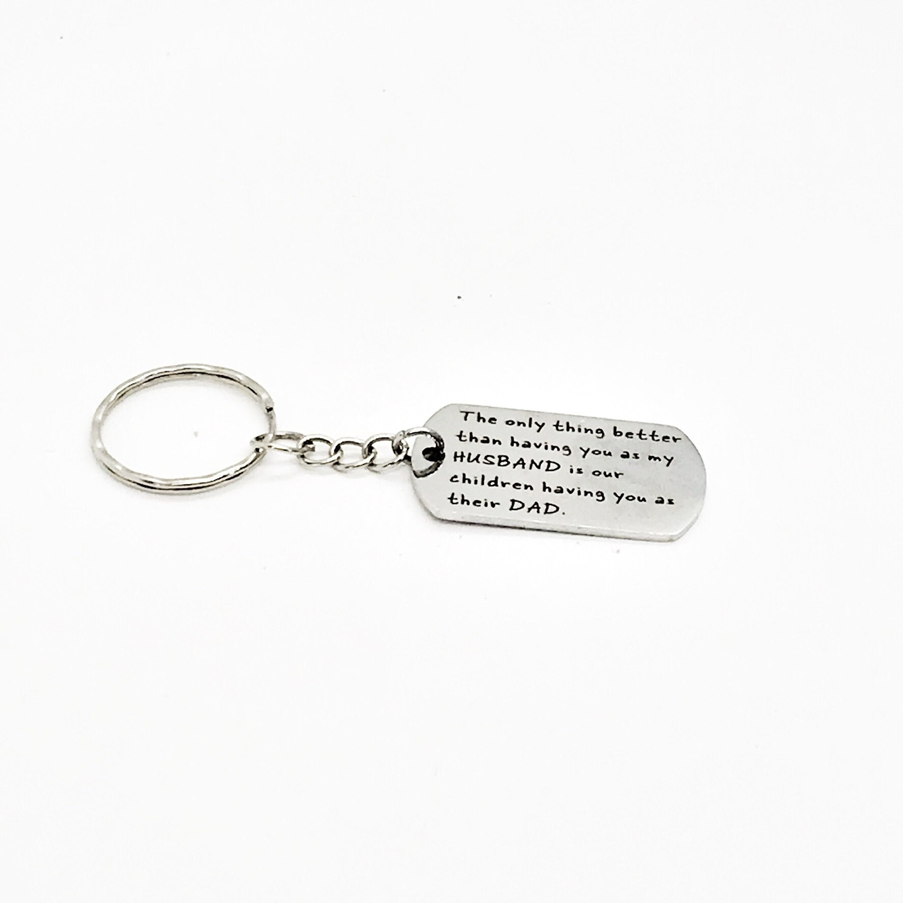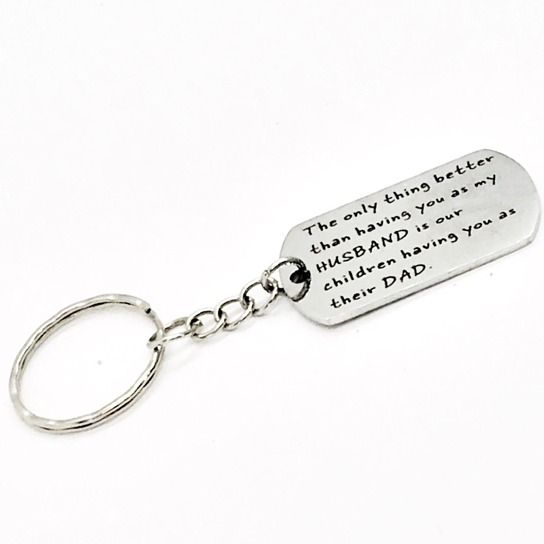 This is a great gift for your husband and would be a great way to tell him that you are pregnant! It has a stainless steel laser engraved dogtag charm with “The only thing better than having you as my HUSBAND is our children having you as their DAD" on it.