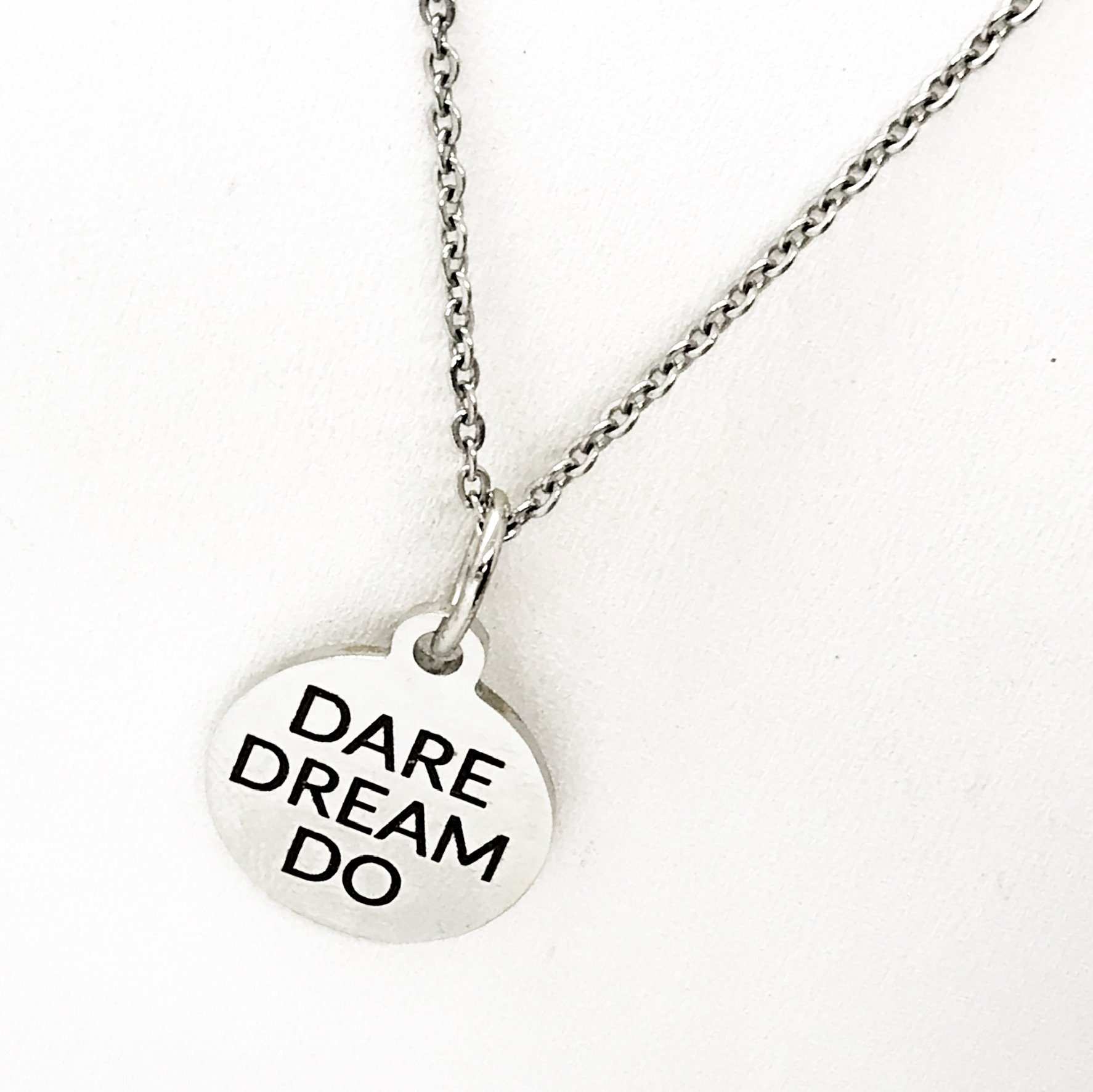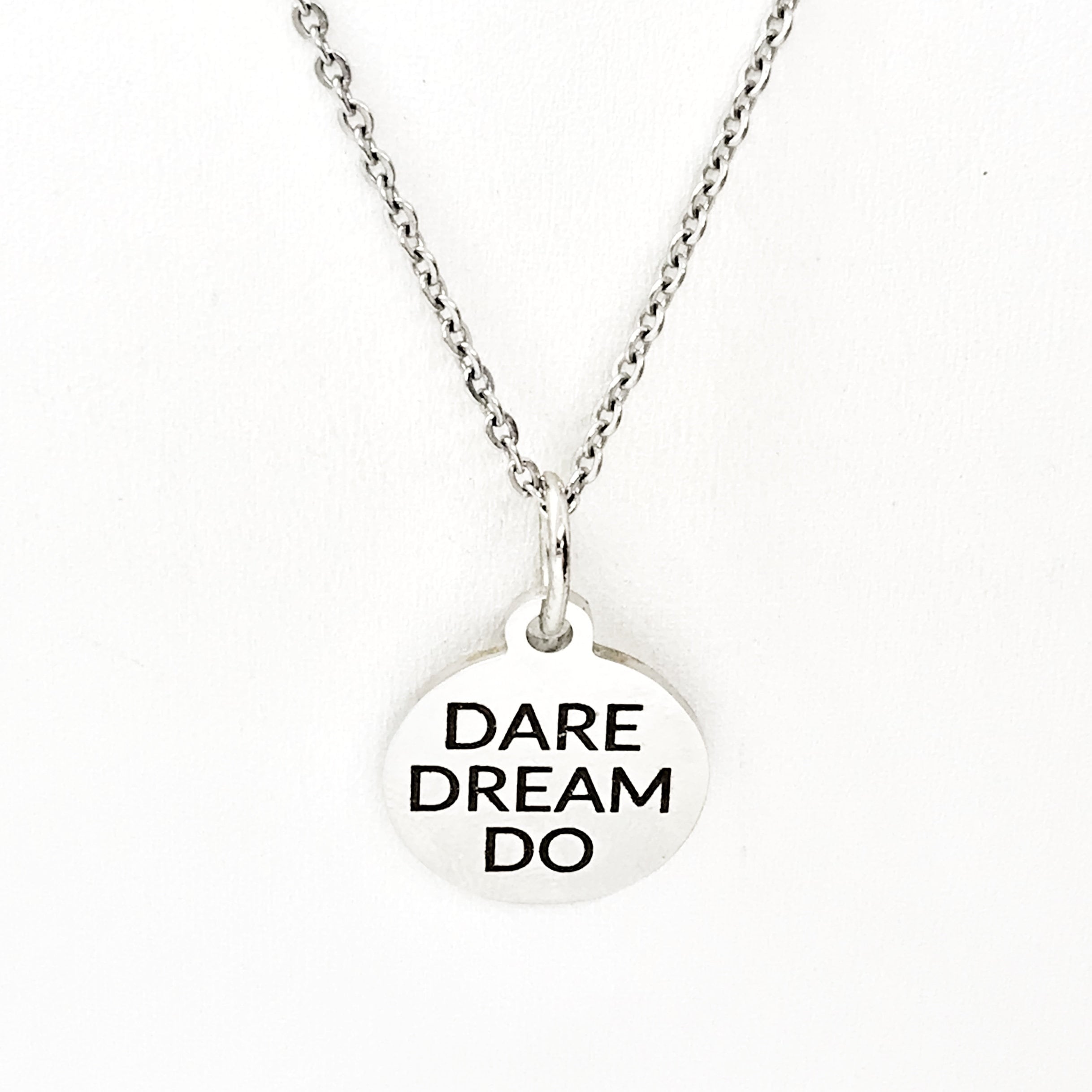 This simple but beautiful necklace has an encouraging “Dare Dream Do” pendant. It is all stainless steel and would be a wonderful way to encourage yourself or someone you love to dream big and work to make those dreams come true!