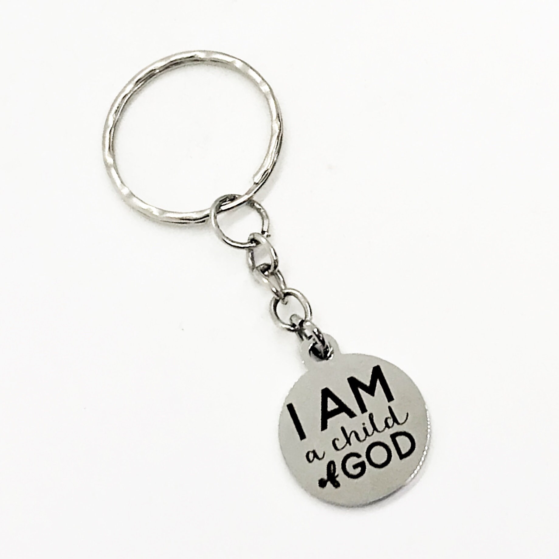 This is a wonderful Christian keychain gift! It has a stainless steel laser engraved charm with “I am a Child of God" on it. The charm measures approx 19mm (3/4 inch).