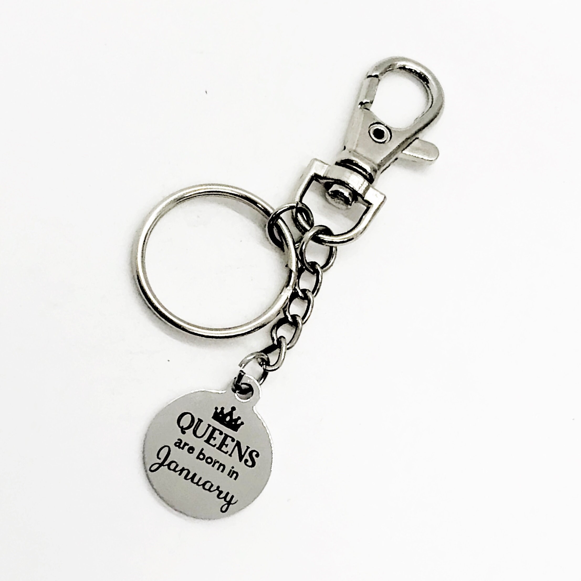 This is a great keychain gift for the queen in your life. It has a stainless steel laser engraved charm with “Queens are born in (the month of your choice)” on it. The keyring can be clipped onto your bag to make it easy to access without digging to the bottom of the bag.
