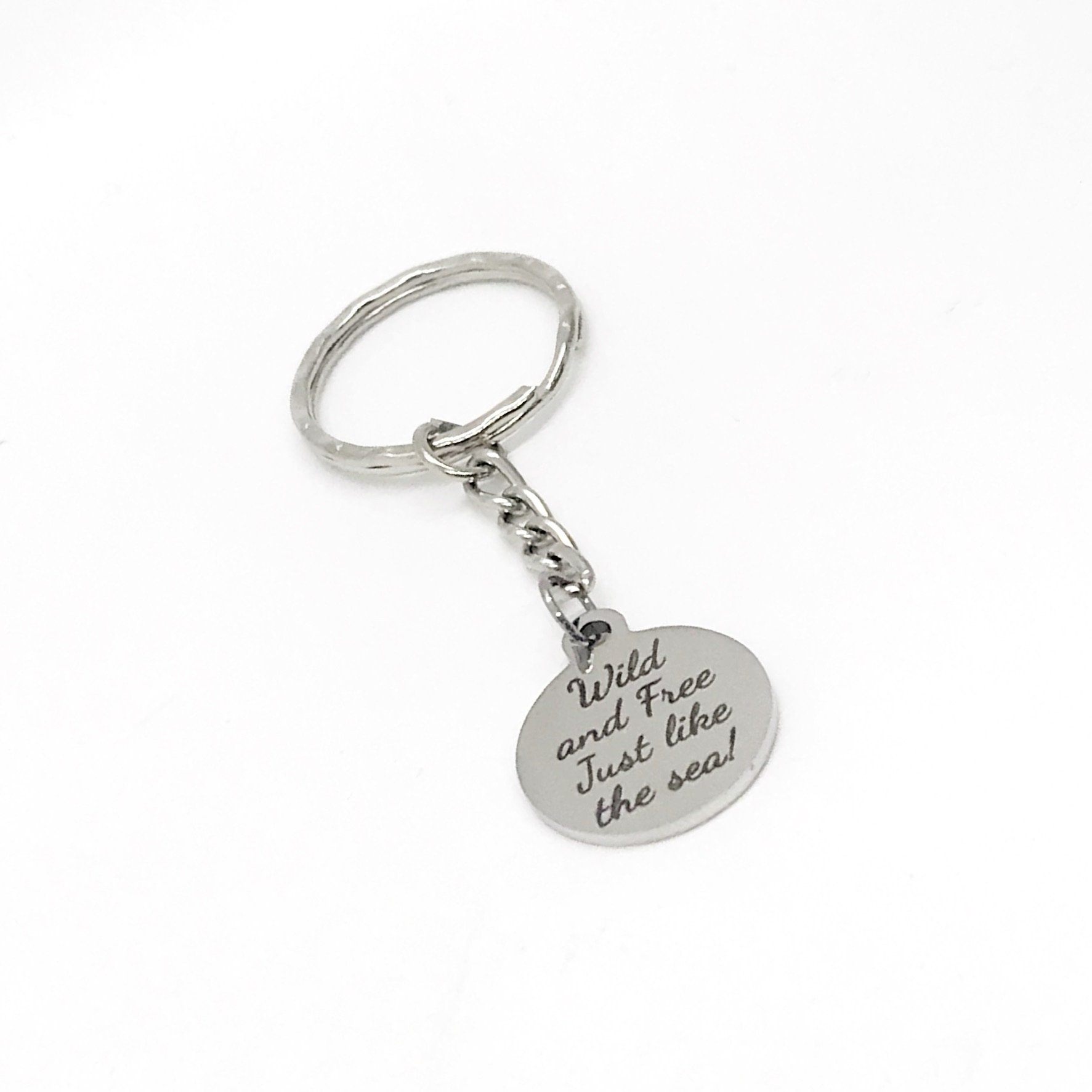 This is a great keychain gift. It has a stainless steel laser engraved charm with “Have I told you today how much I love you?” on it. The charm measures approx. 3/4 inch across.