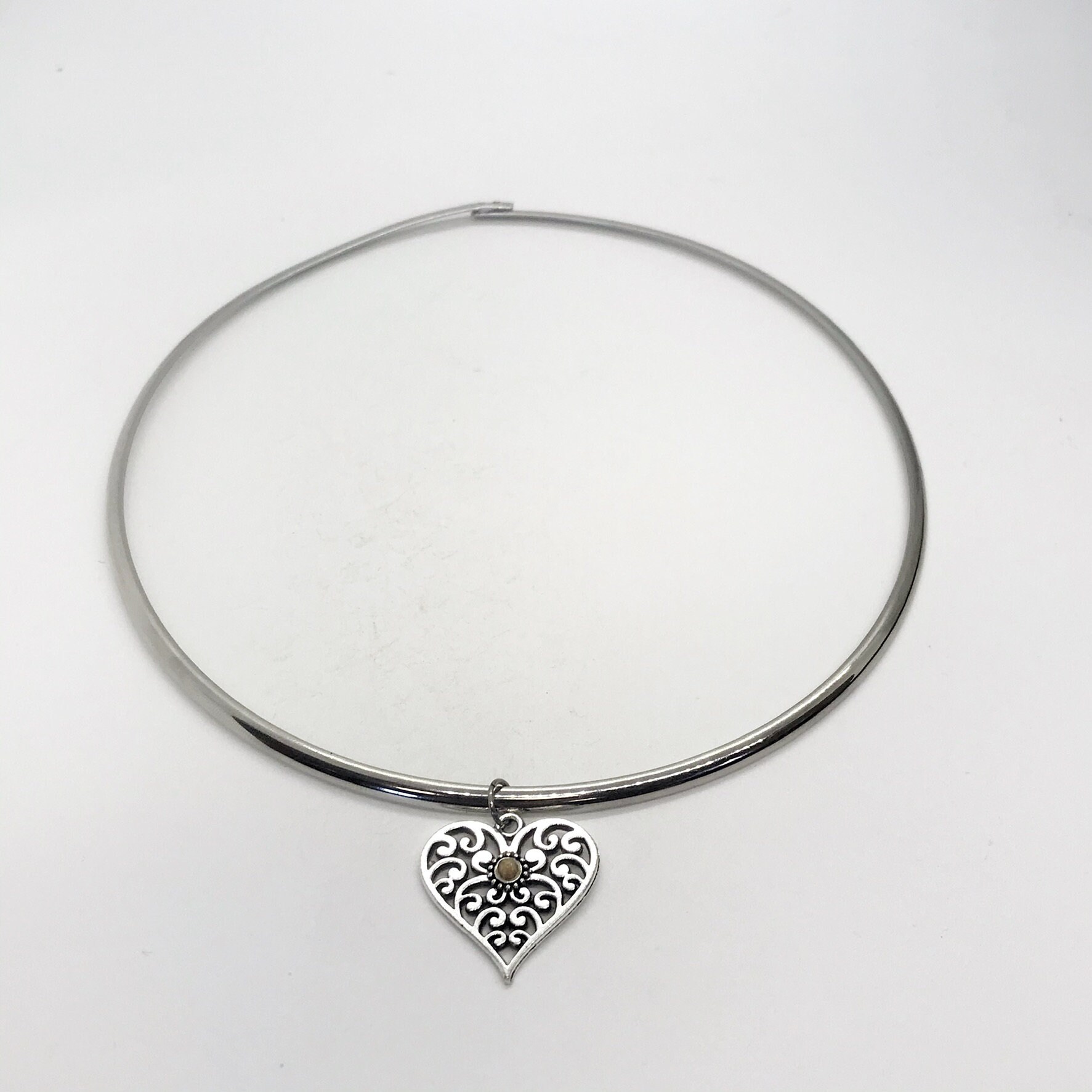 This necklace is an 18” stainless steel collar necklace with a single mustard seed charm on it to remind us of the scripture of Matthew 17:20 that tells us that with the faith of a single mustard seed, we can move mountains.