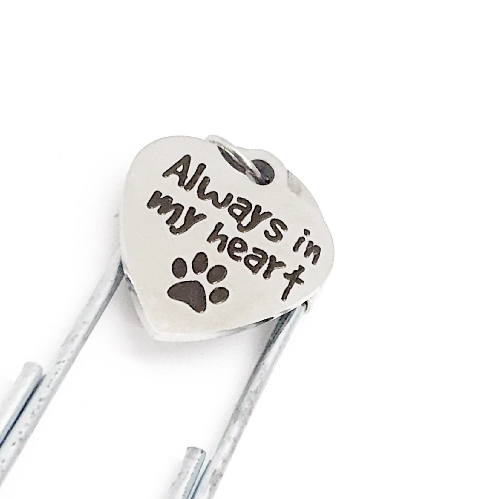 This bookmark has a stainless steel laser engraved charm with “Always in my heart” on it. It can be used as a bookmark, page marker, or planner book mark.