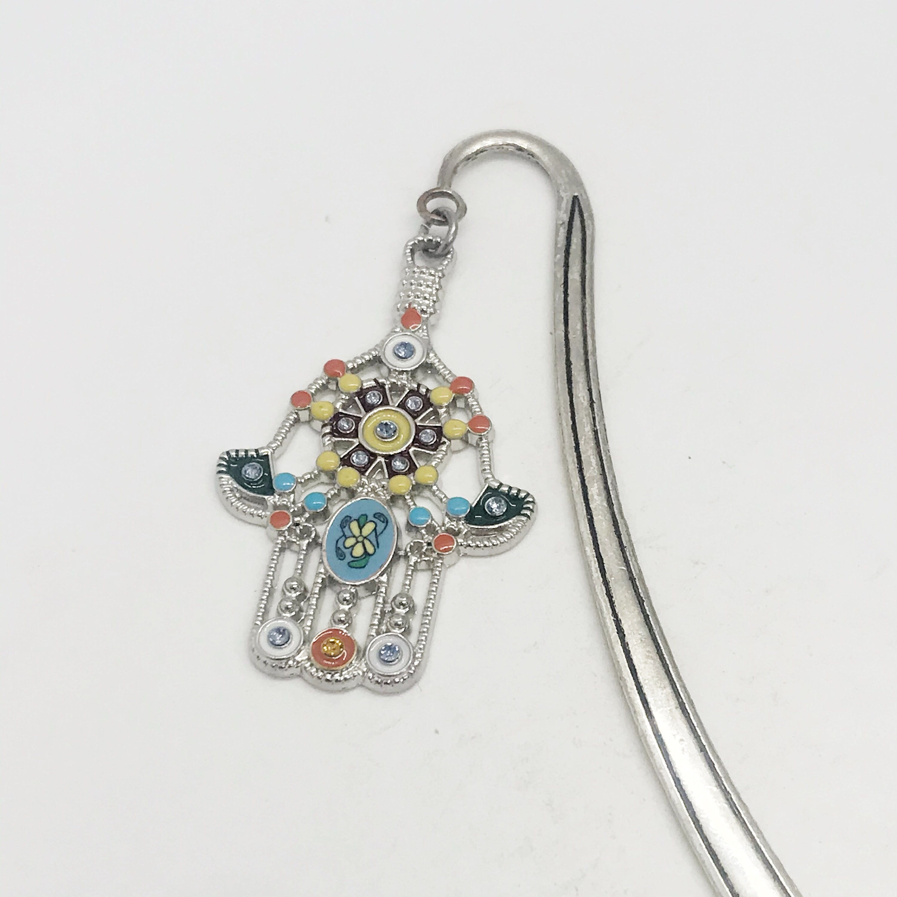 This is a beautiful Hamsa charm bookmark. The hamsa or hand of Fatima is a protective symbol that is worn to bring protection or good luck to the wearer. This one has beautiful colors on it. The Hamsa measures approx. 2.25 Inches long by approx. 1.5 Inches across (58mm x 37mm).
