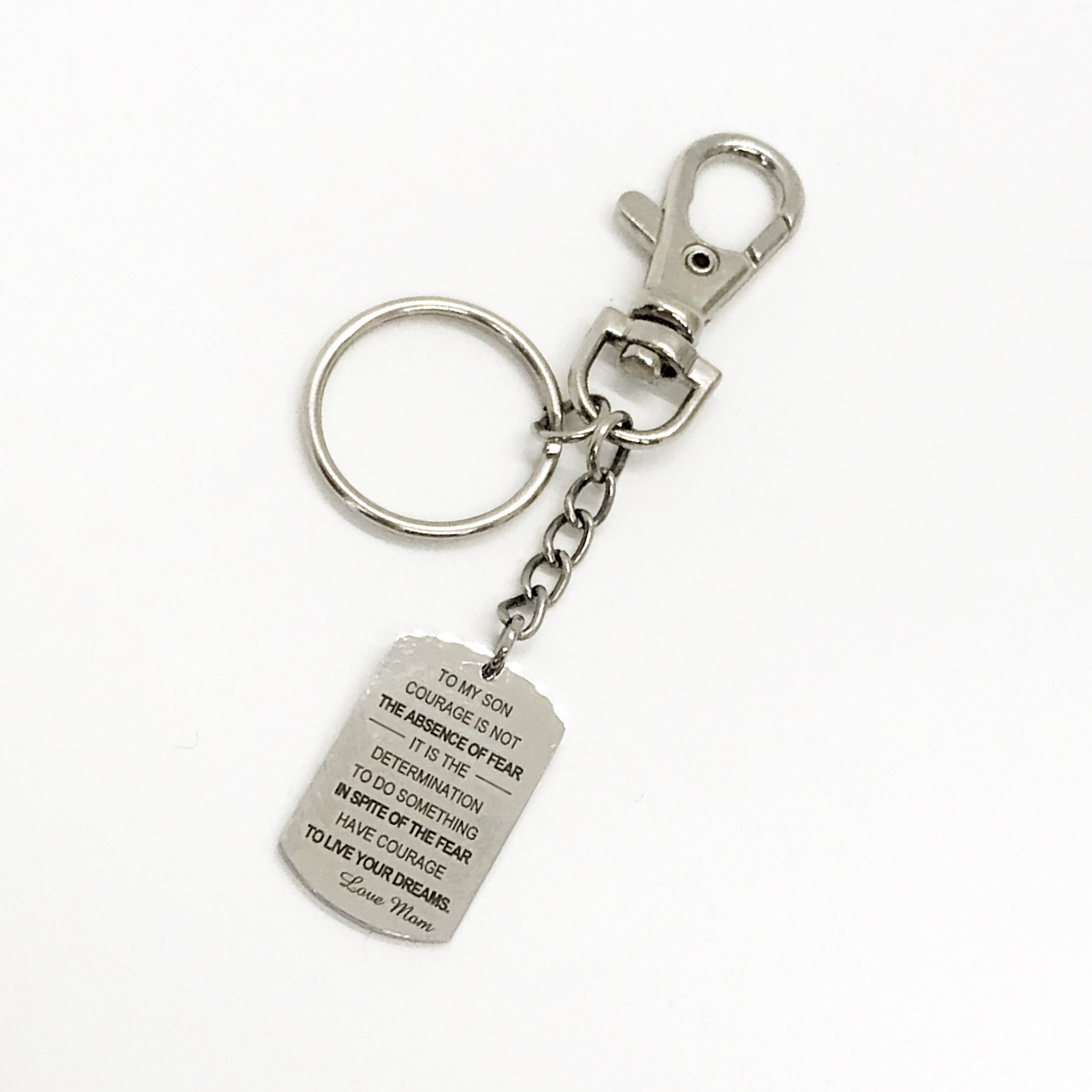 This is a great keychain for encouraging your son or daughter. It has a stainless steel laser engraved charm with the following on it:
