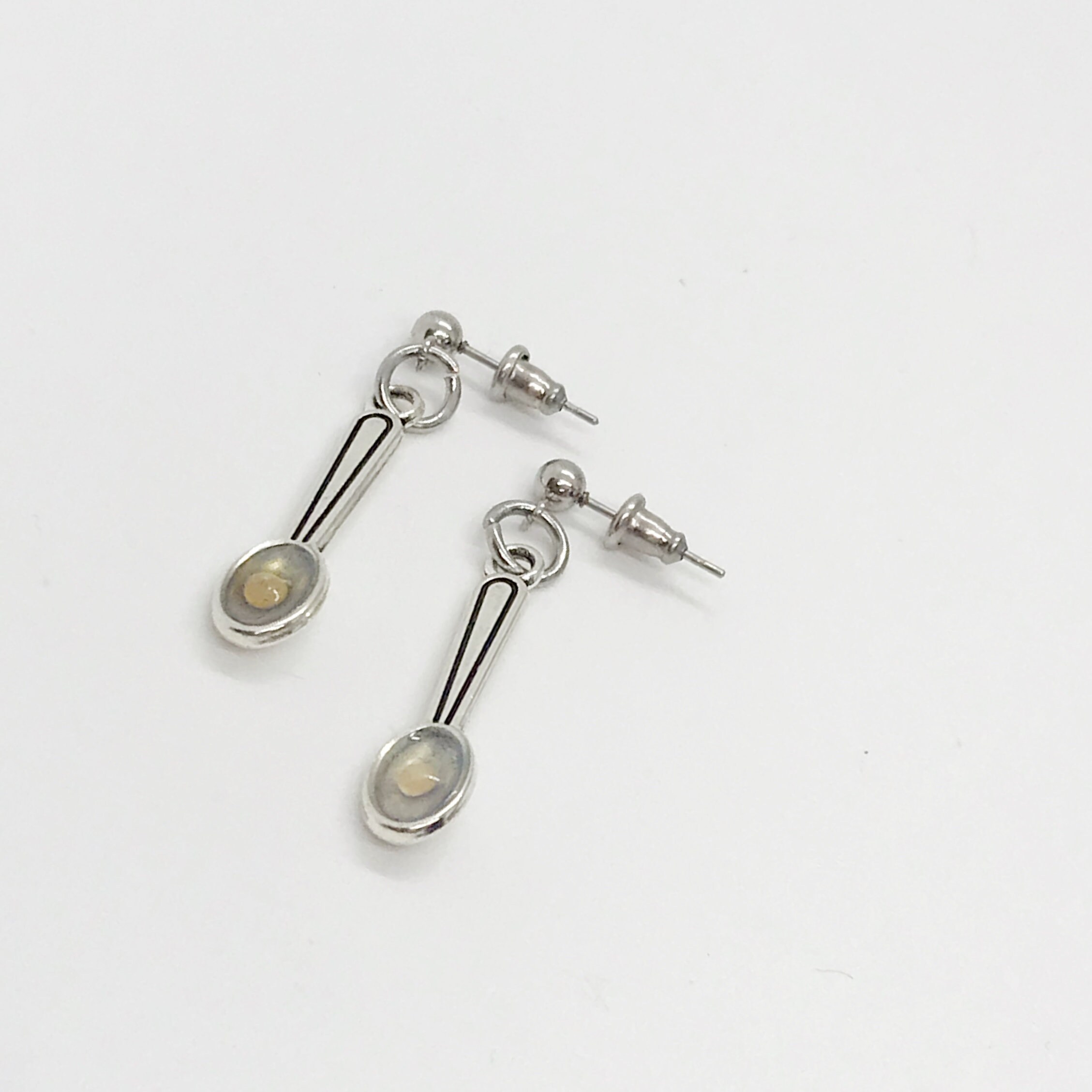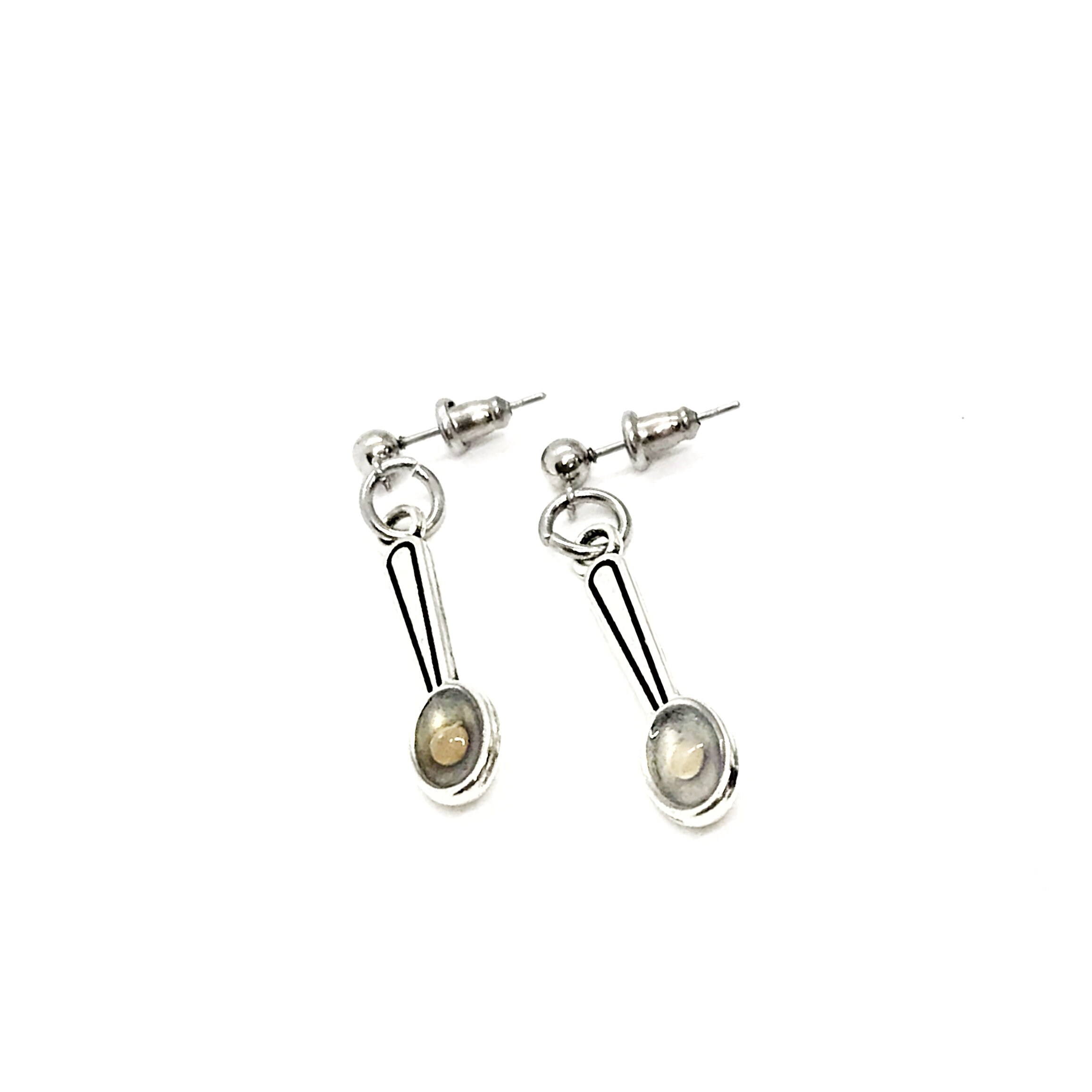 This is a unique and great set of statement earrings. They are made to represent mustard seed faith as described in Matthew 17:20. These would be great earrings to remind yourself or someone that you love that you can move mountains with faith as small as a mustard seed. The drop is a silvertone metal and are placed on stainless steel posts. The drop measures approx. 1 inch long.