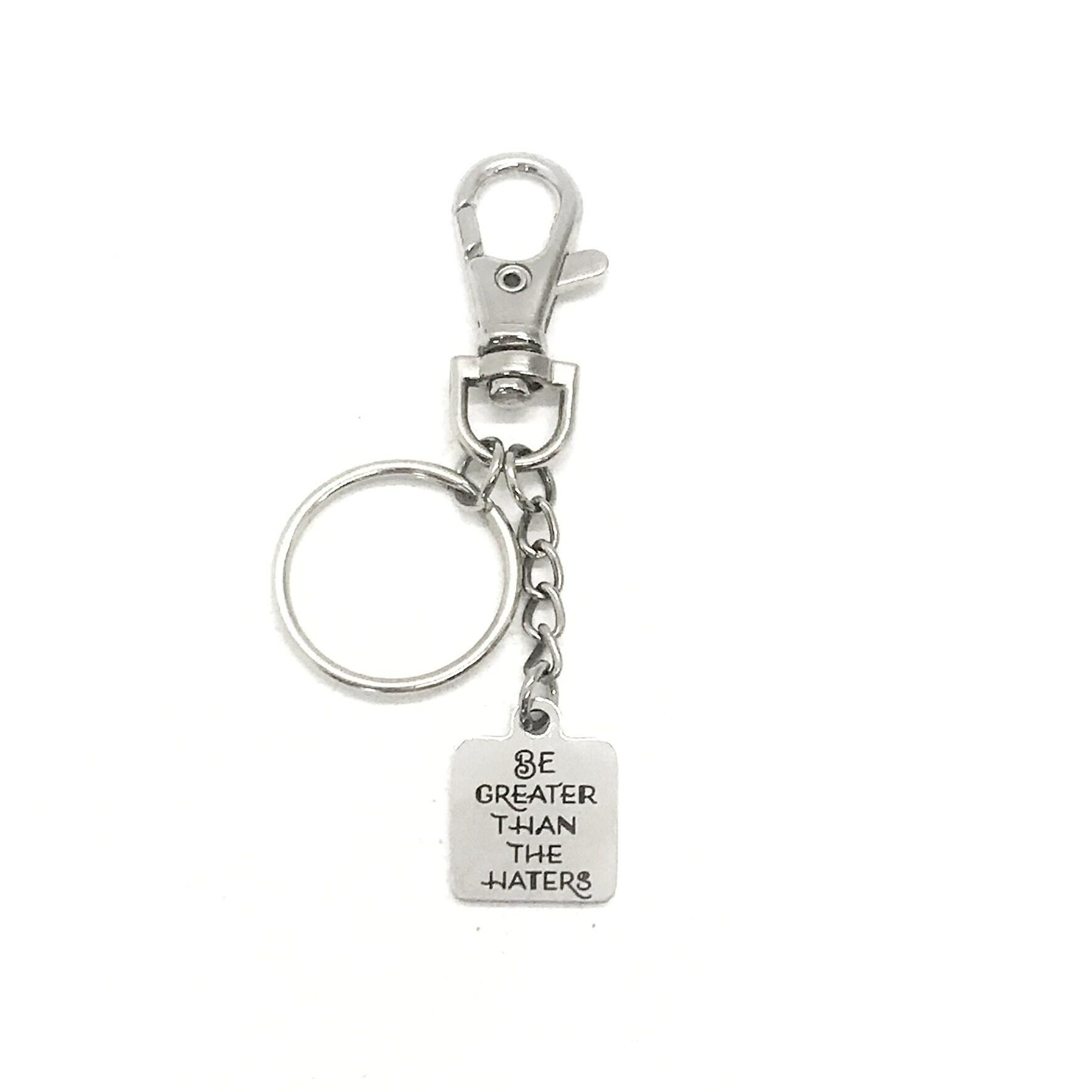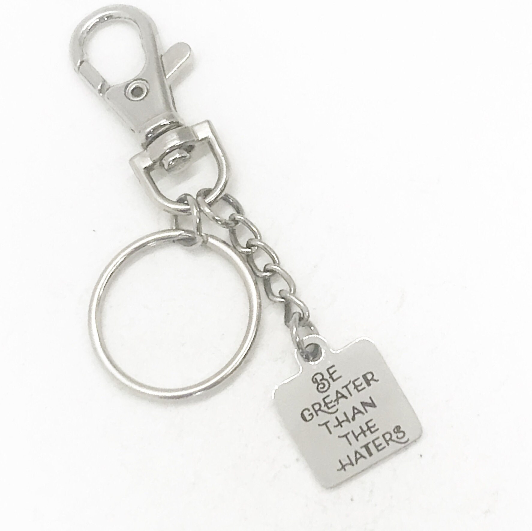 This is a great keychain for encouraging someone. It has a stainless steel laser engraved charm with “Be greater than the haters” on it. The keyring can be clipped onto your bag to make it easy to access without digging to the bottom of the bag.