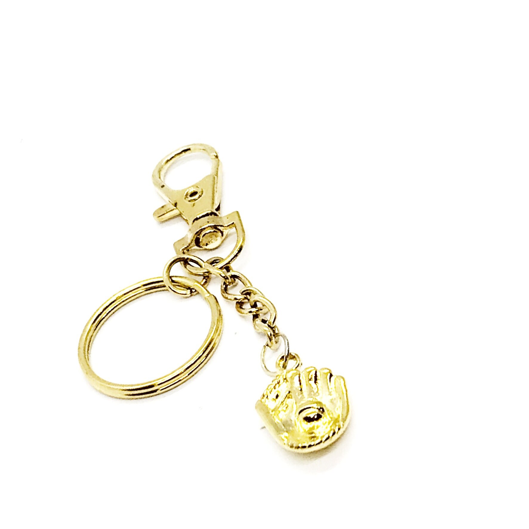 This is a great goldtone keychain gift . The keyring can be clipped onto your bag to make it easy to access without digging to the bottom of the bag. It has a Goldtone glove and baseball or softball charm on it.