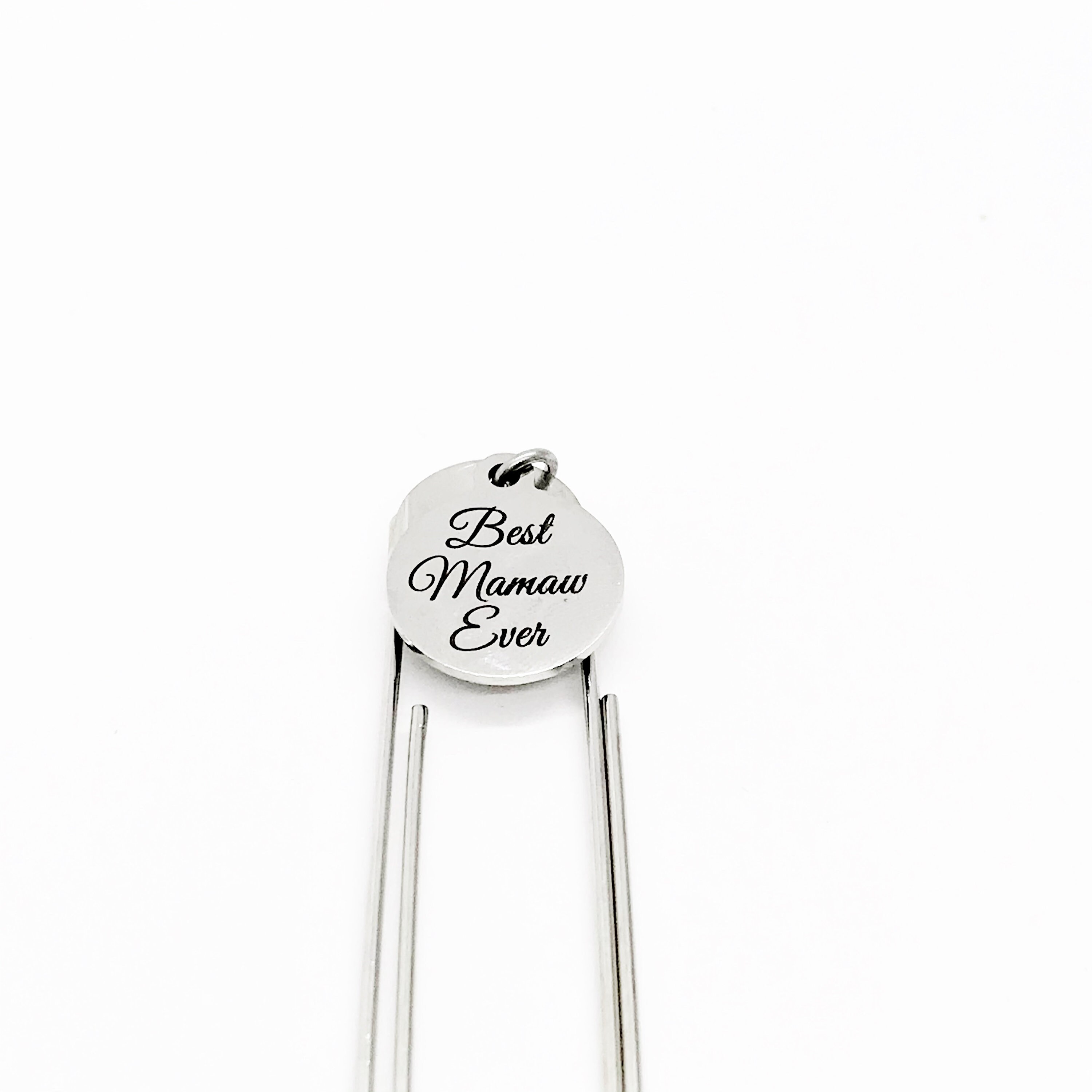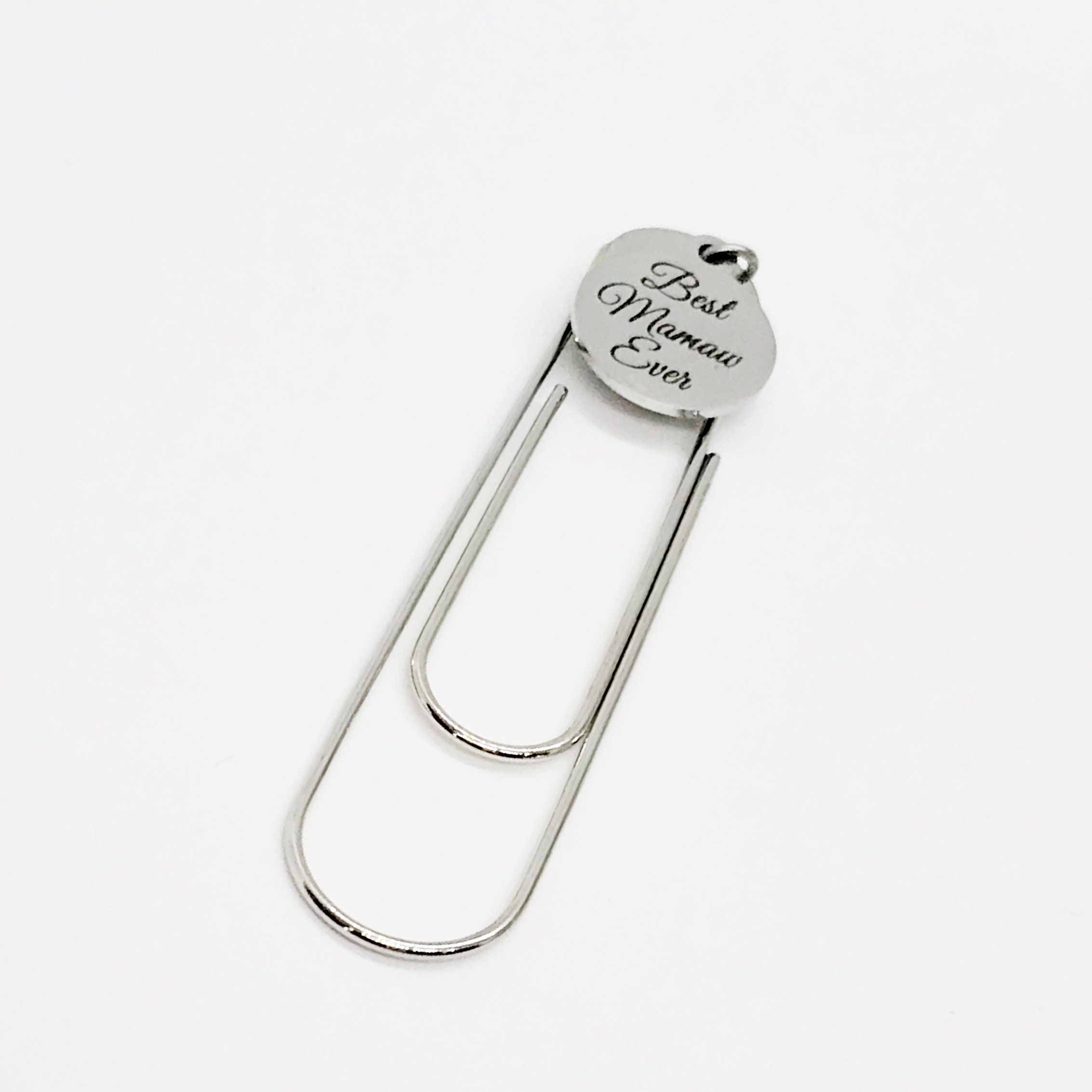 This bookmark has a stainless steel laser engraved charm with “Best Mamaw Ever” on it. It can be used as a bookmark, page marker, or planner book mark.