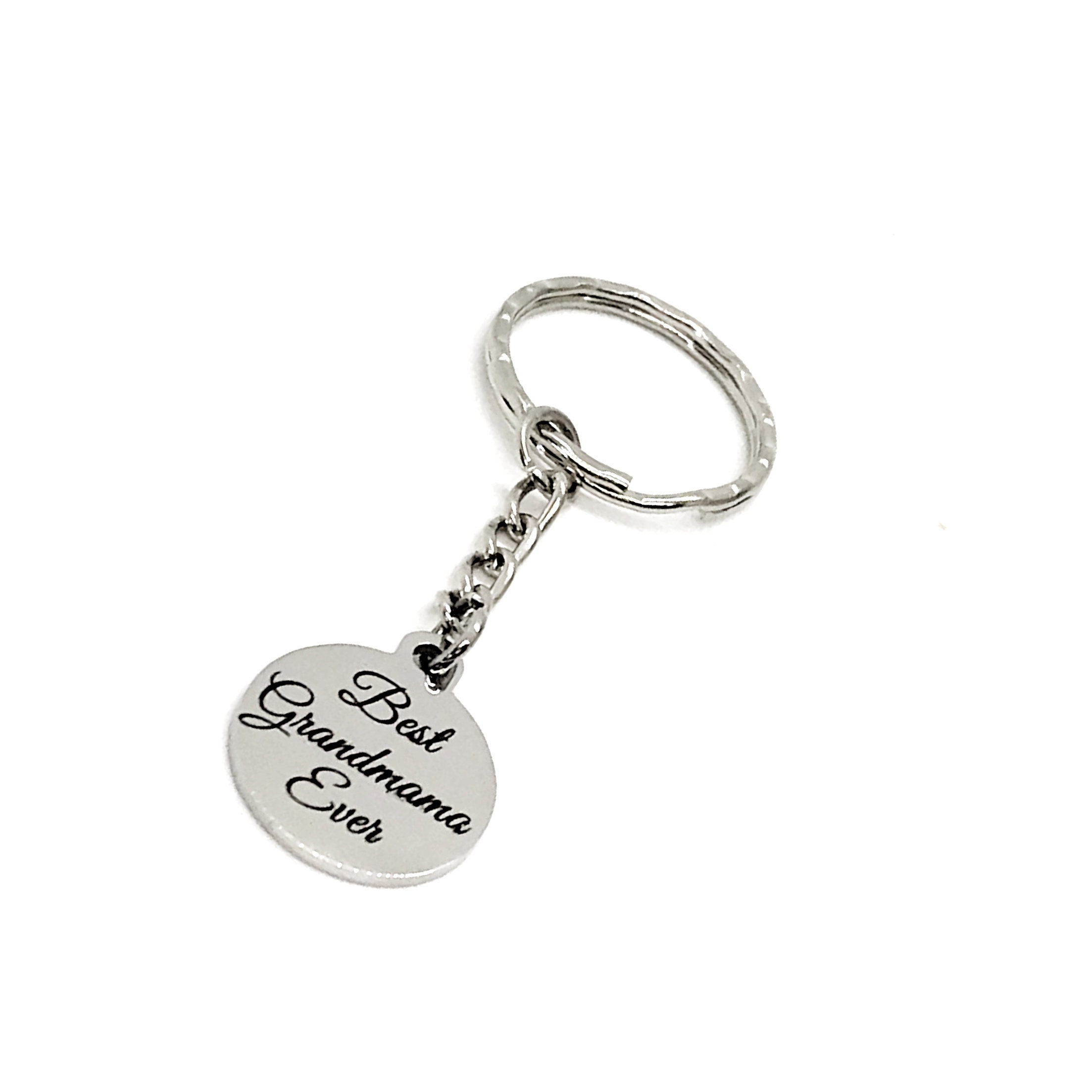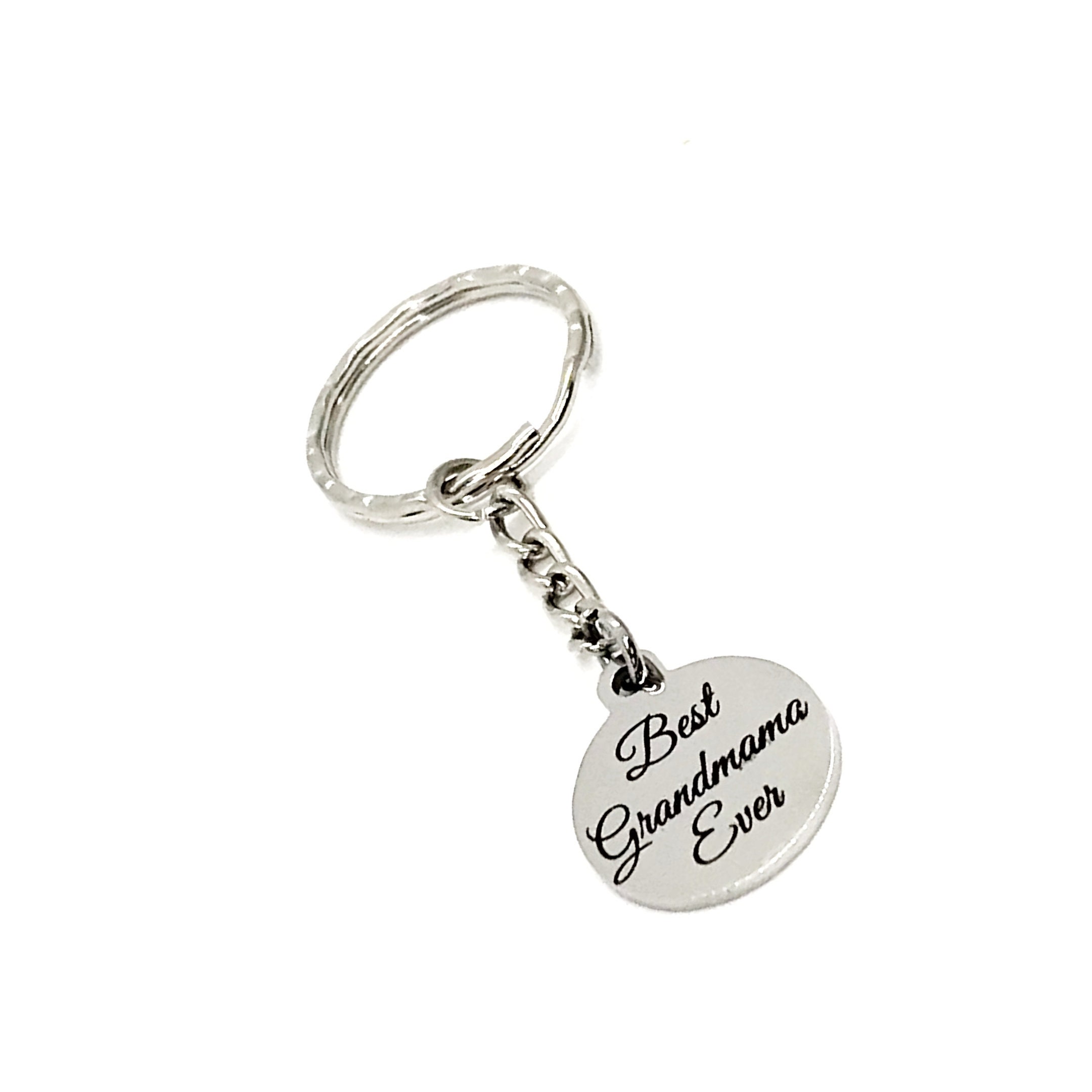 This is a great gift of encouragement! It has a stainless steel laser engraved charm with “Best Grandmama Ever”. The charm measures approx. 3/4 inch.