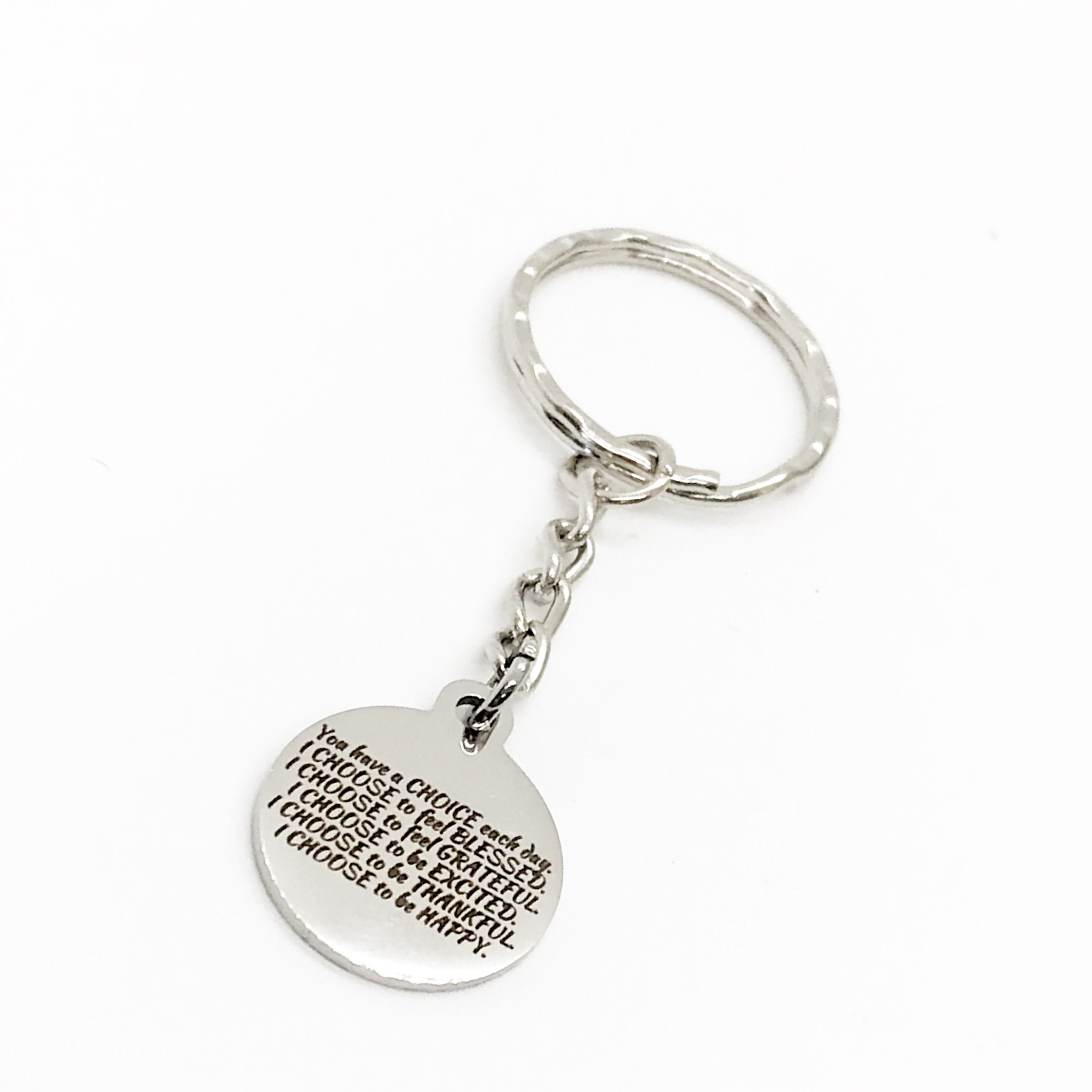 This is a great gift of encouragement! It has a stainless steel laser engraved charm with “You have a choice each day. I CHOOSE to feel BLESSED. I CHOOSE to feel GRATEFUL. I CHOOSE to be EXCITED. I CHOOSE to be THANKFUL. I CHOOSE to be HAPPY.” on it. The charm measures approx. 3/4” and due to the amount of text, the font size is small, but the message is huge!