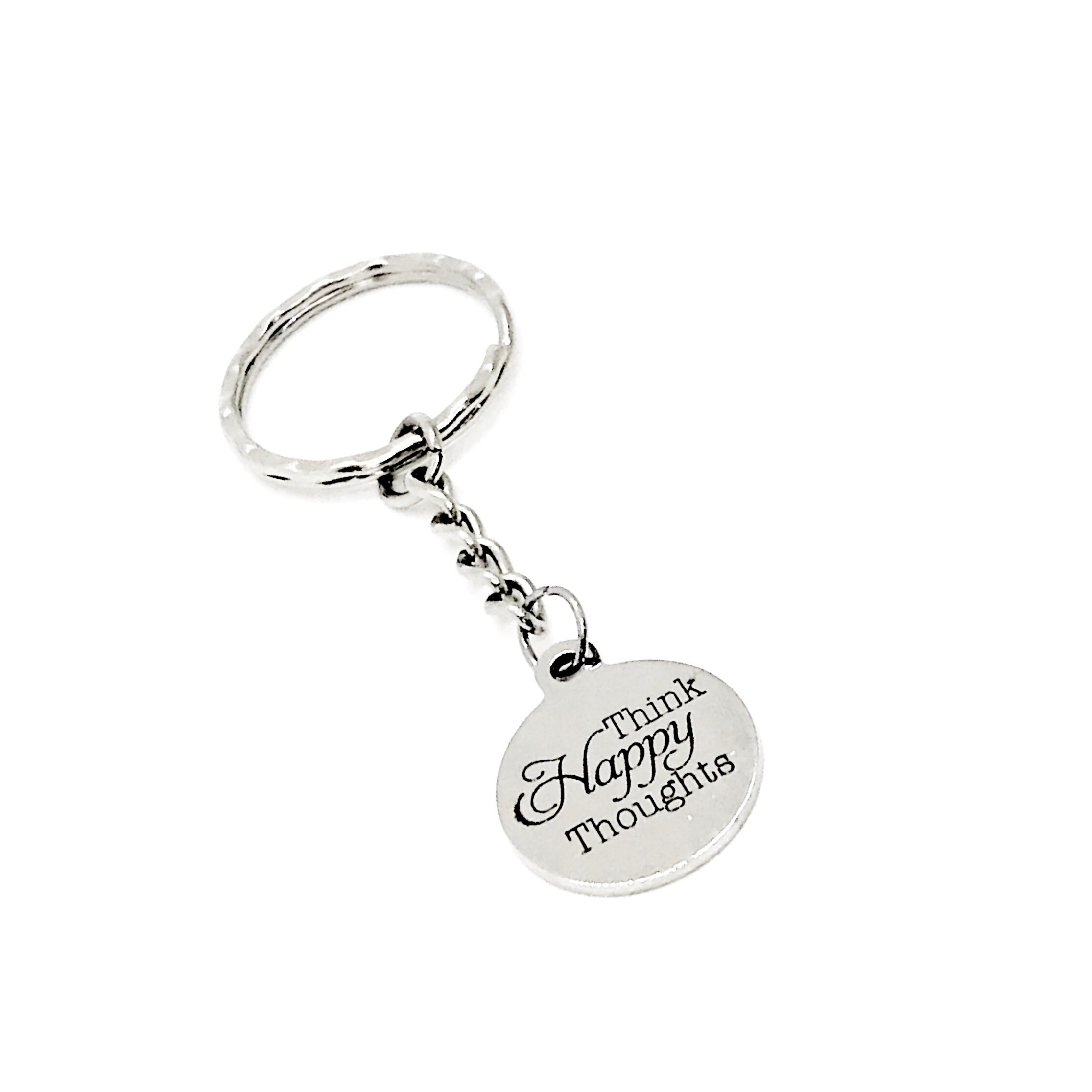 This is a great keychain gift with a stainless steel laser engraved charm with “Think Happy Thoughts” on it.