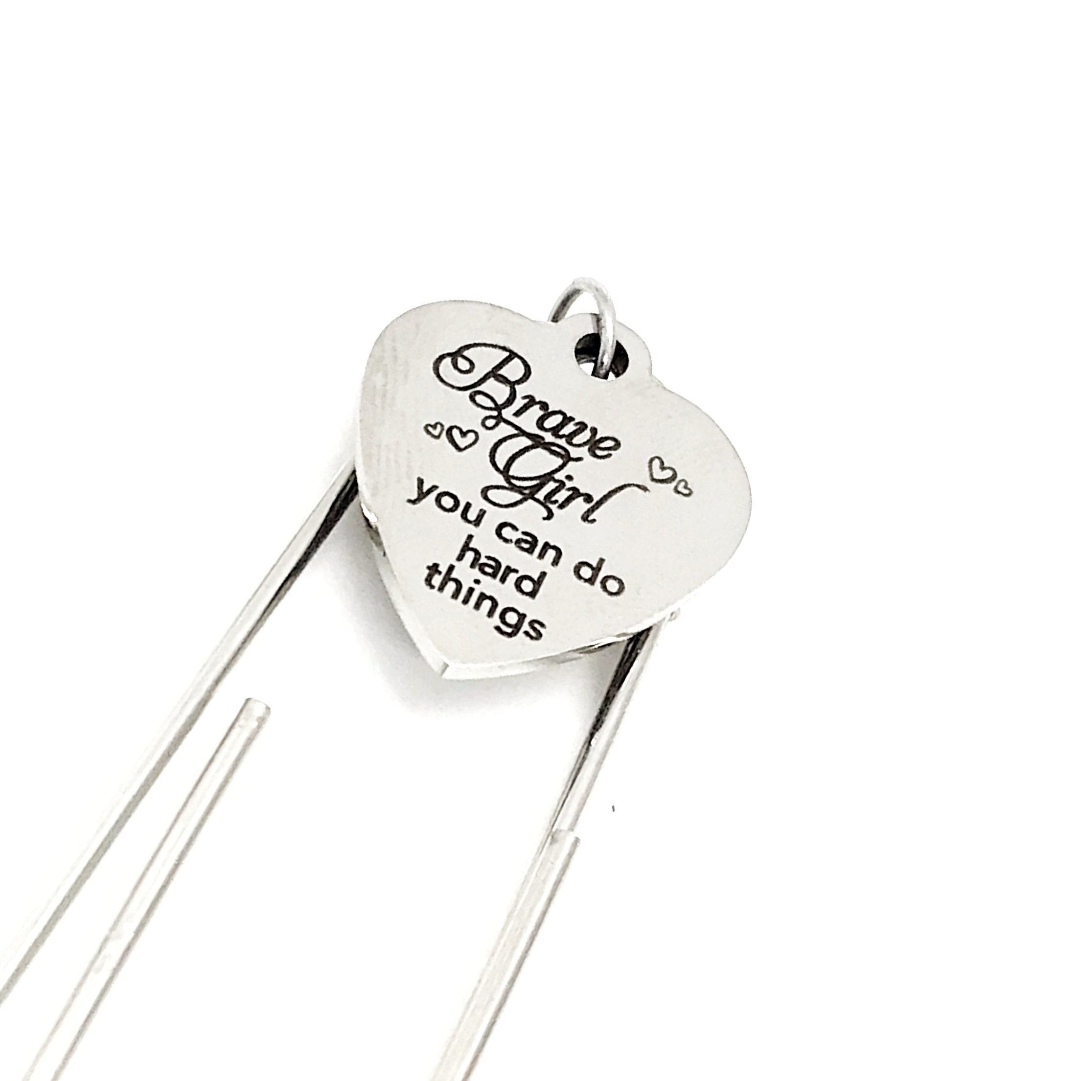 This bookmark has stainless steel laser engraved charm that says, “Brave Girl, you can do hard things” on it. This would be a great way to encourage someone.