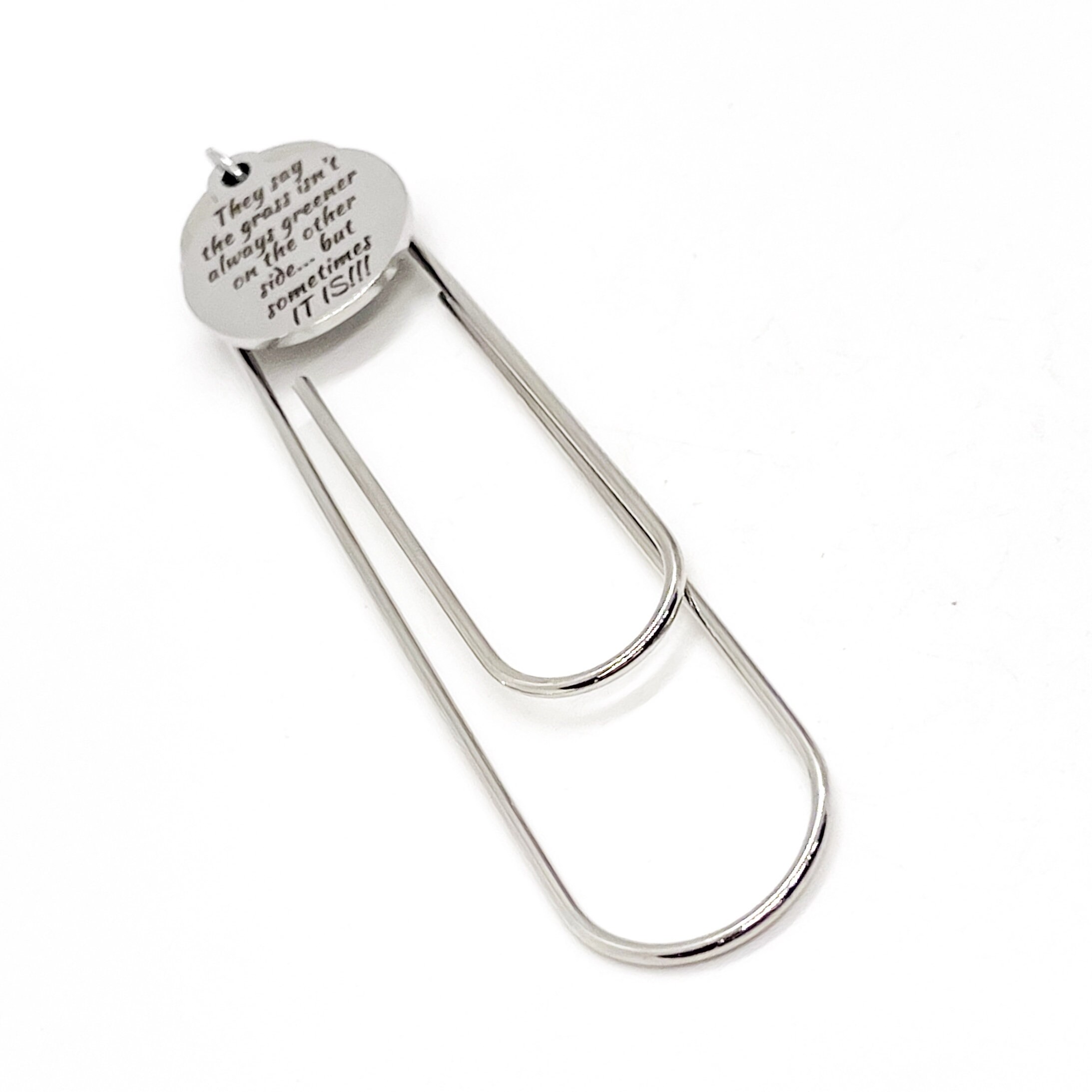 This bookmark has a stainless steel laser engraved charm that says “They say the grass isn’t always greener on the other side... but sometimes IT IS!”.