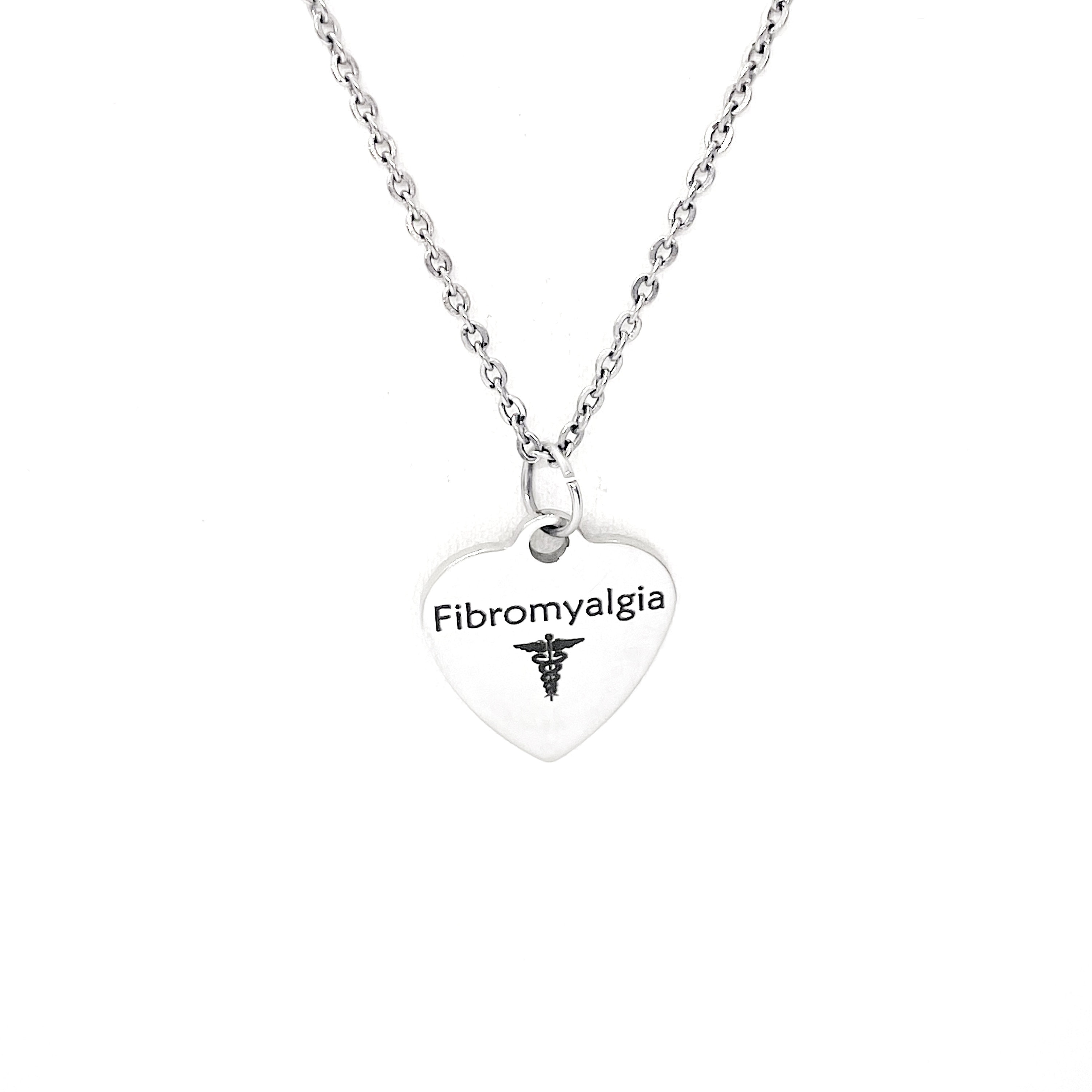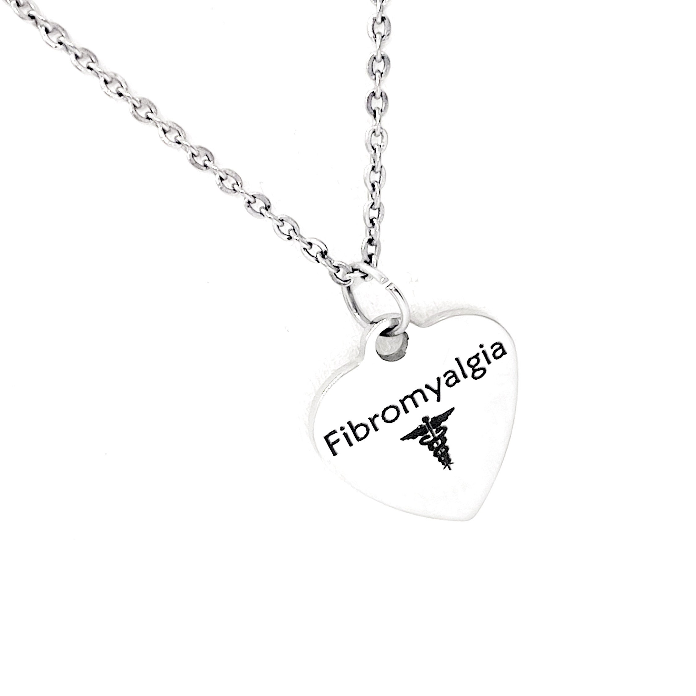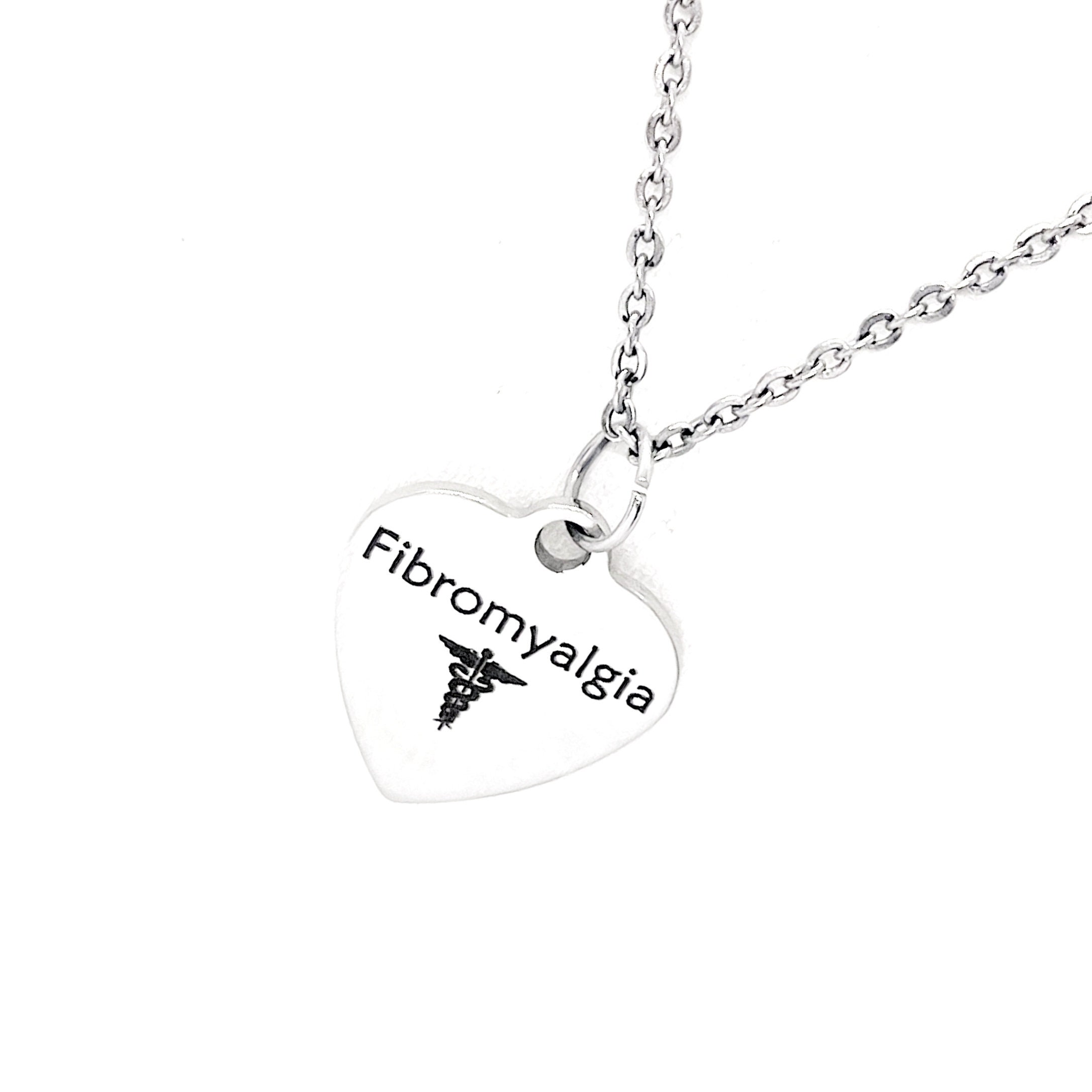 This is a stainless steel laser engraved pendant on a stainless steel chain. The pendant has “Fibromyalgia” and a medical caduceus symbol on it. This pendant is available on your choice of 16, 18, 20, 22, 24, 26, 28 or 30 inch chain. The pendant is also available for individual purchase if you have another chain on which you would like to wear it. For an additional charge, the charm can be customized to meet your specific needs.