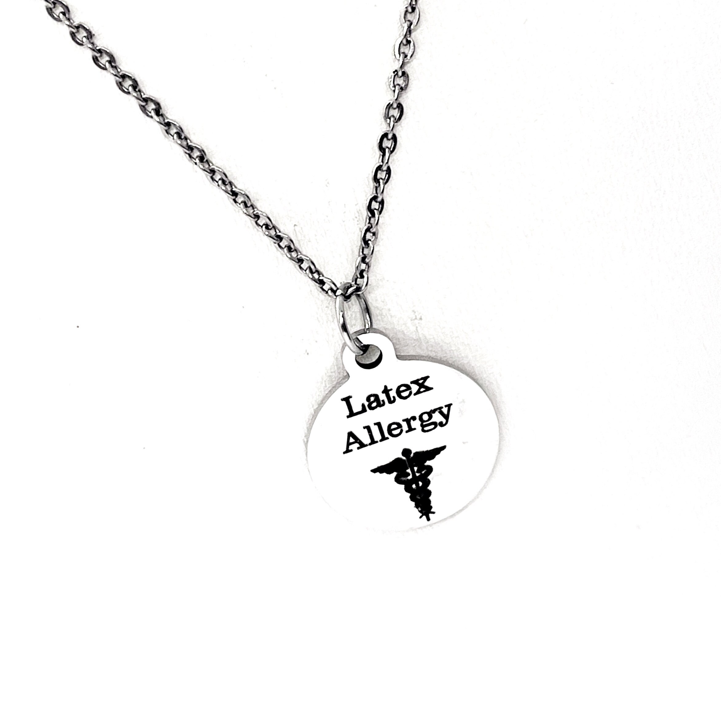 This is a stainless steel laser engraved pendant on a stainless steel chain. The pendant has “Aspirin Allergy” and a medical caduceus symbol on it. This pendant is available on your choice of 16, 18, 20, 22, 24, 26, 28 or 30 inch chain. The pendant is also available for individual purchase if you have another chain on which you would like to wear it. For an additional charge, the charm can be customized to meet your specific needs.